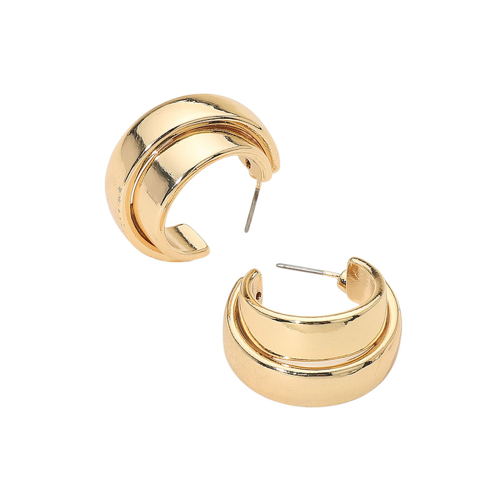 Details • Size : 1" X 1" X 0.6" • Post Back • Bold and modern, these wide hoop earrings feature a polished finish and dimensional curved design. A chic accessory to elevate both casual and formal outfits with contemporary style and striking contrast. • Lead and Nickel Compliant
