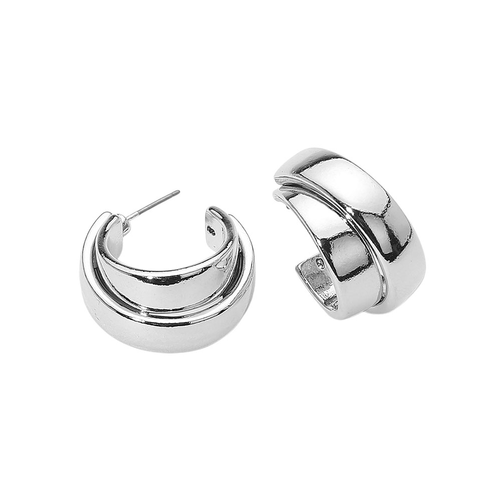 Details • Size : 1" X 1" X 0.6" • Post Back • Bold and modern, these wide hoop earrings feature a polished finish and dimensional curved design. A chic accessory to elevate both casual and formal outfits with contemporary style and striking contrast. • Lead and Nickel Compliant