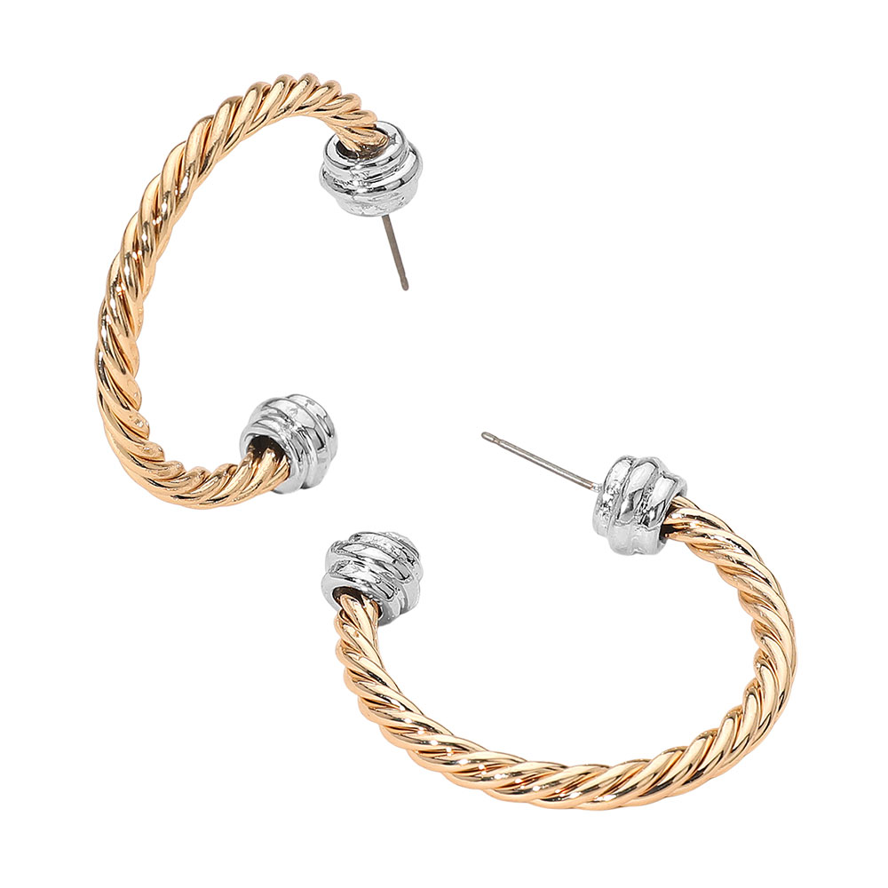Two Tone Metal Rope Hoop Earrings