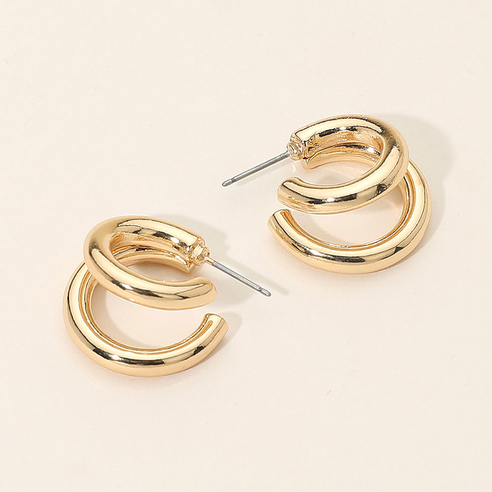 Details • Size : 0.8" X 0.8" X 0.7" • Post Back • Stylish double hoop earrings featuring a sleek design for a modern and versatile look. Ideal for everyday wear or elevating casual outfits, these earrings add a touch of effortless sophistication to any style. • Lead and Nickel Compliant