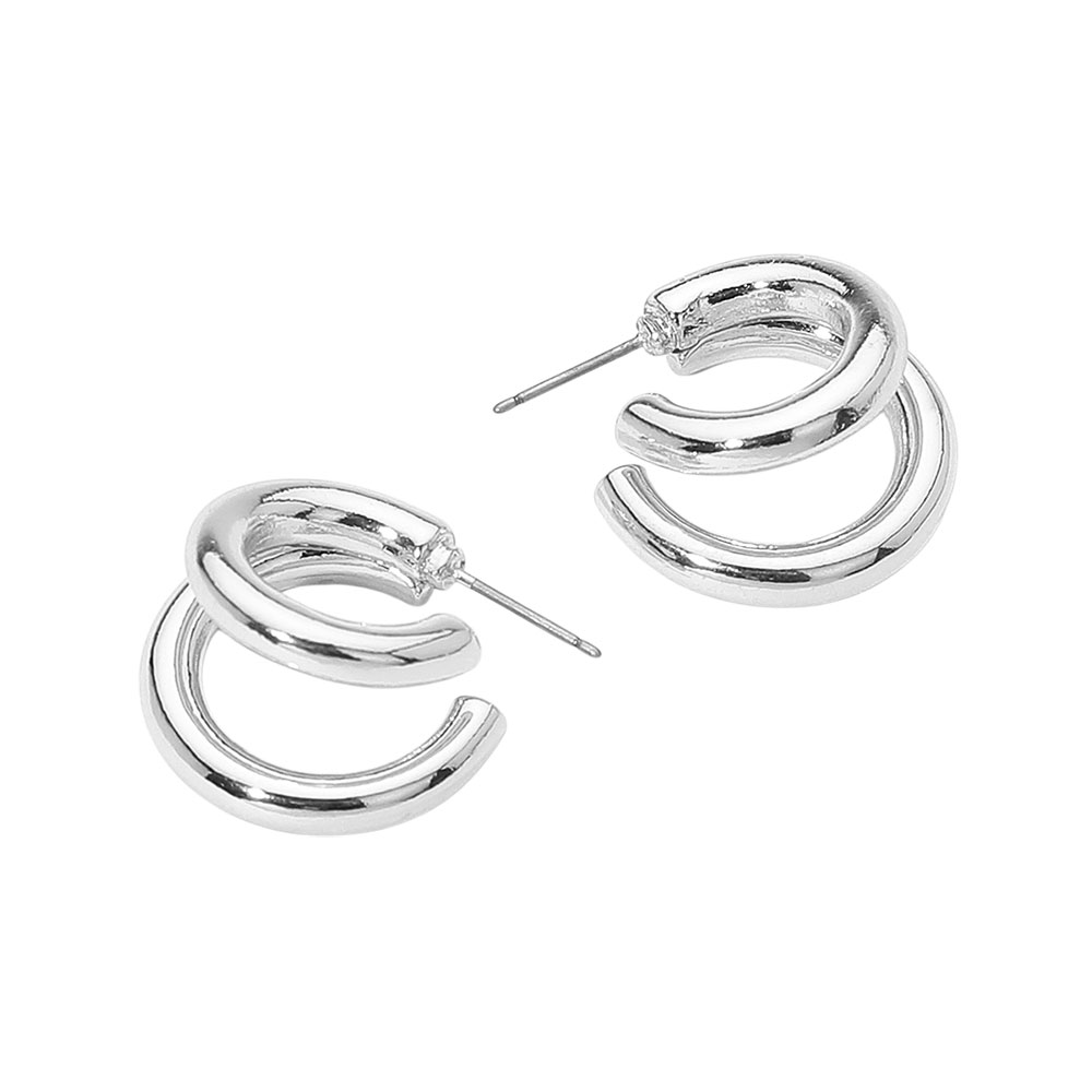 • Stylish double hoop earrings featuring a sleek design for a modern and versatile look. Ideal for everyday wear or elevating casual outfits, these earrings add a touch of effortless sophistication to any style.
