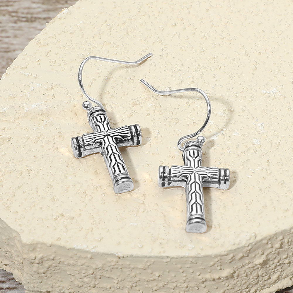 • Elevate your look with these vintage cross drop earrings featuring textured detailing and a bold design. Perfect for everyday wear or special occasions, these earrings add a touch of faith-inspired elegance and timeless style, making them a meaningful and versatile accessory for any collection.
