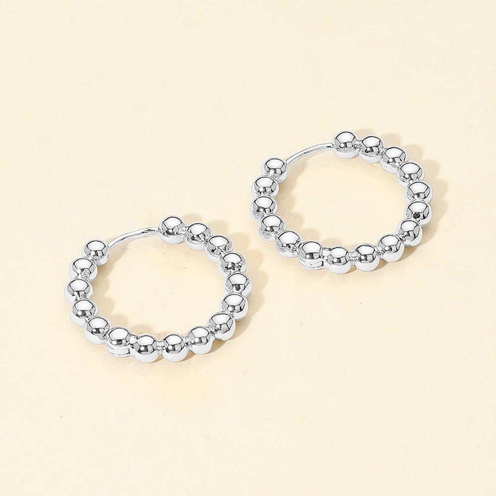 • Elegant beaded hoop earrings crafted with smooth polished round beads, offering a fresh twist on the classic hoop. Lightweight and versatile, these earrings complement both casual and formal styles, making them a timeless accessory for everyday wear or special occasions.