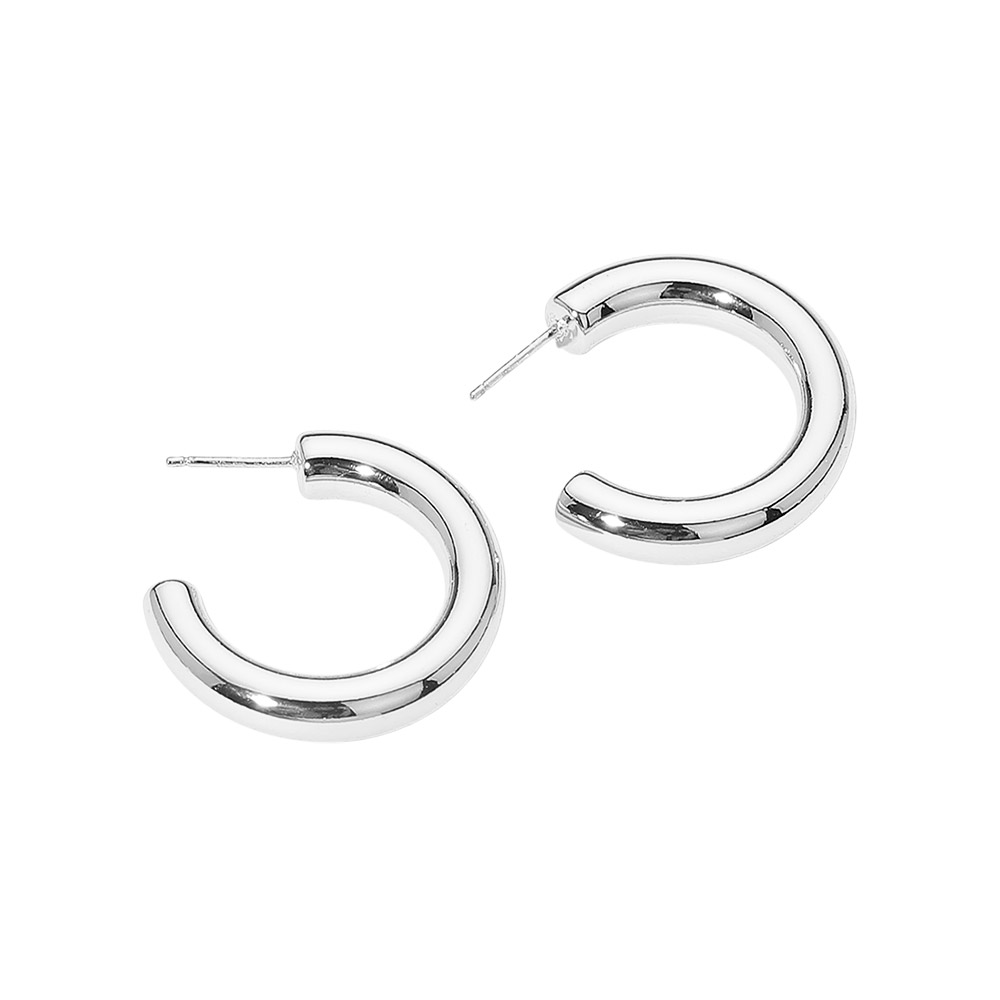 White Gold Dipped Small Chunky Open Hoop Earrings