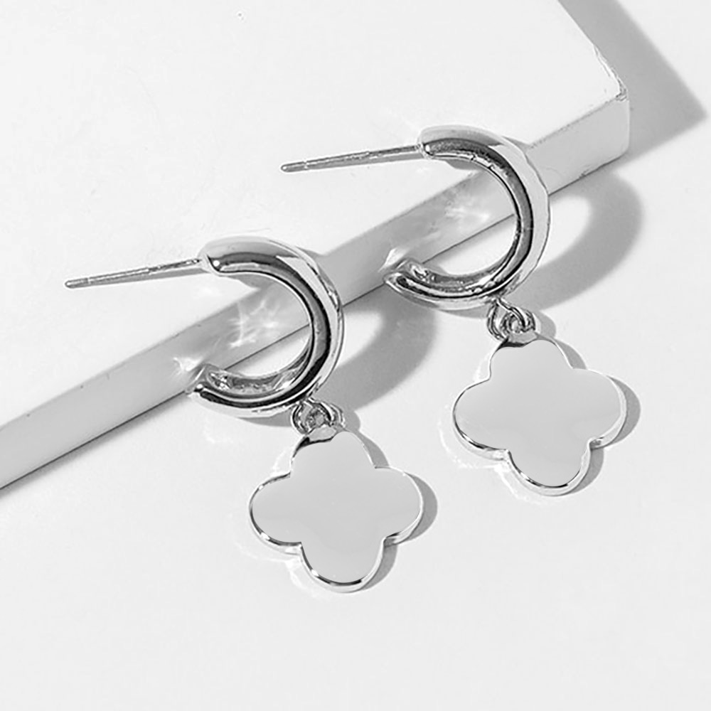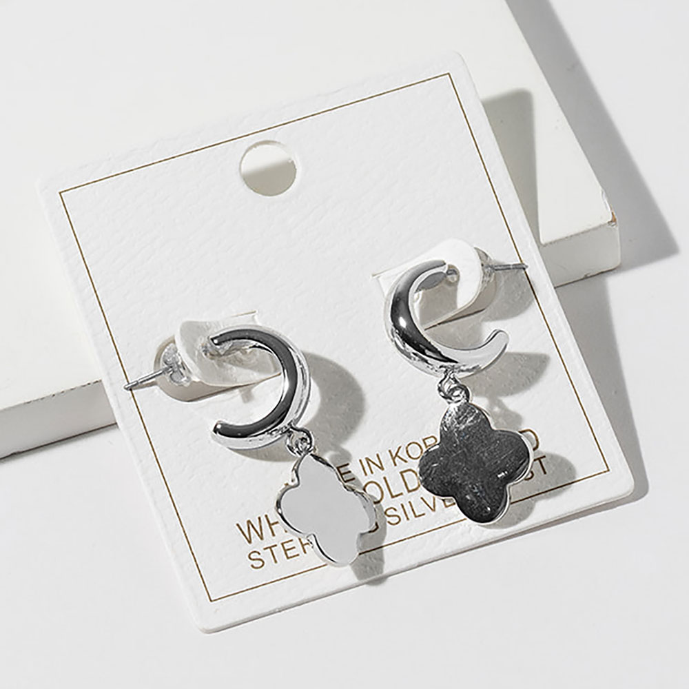 Details • Size : 0.6" X 1.2" • Chic hoop drop earrings featuring a sleek quatrefoil charm silhouette for a polished, everyday-to-evening look. Designed to elevate casual outfits or complement dressy styles, these earrings offer a timeless accent ideal for gifting, seasonal collections, or effortless accessorizing. • Gold Dipped • Lead and Nickel Compliant • Made In Korea • Sterling Silver Post