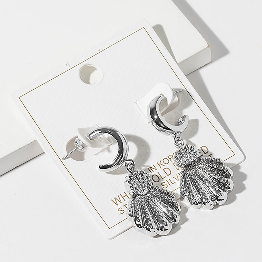 • Scallop shell drop earrings featuring a sculpted shell motif with dimensional texture and elegant movement. Designed to complement resort looks, coastal edits, and everyday styling, these statement drops offer timeless seaside charm for boutique assortments and gift-ready displays.