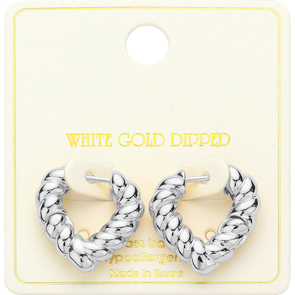 White Gold Dipped Twisted Heart Huggie Earrings