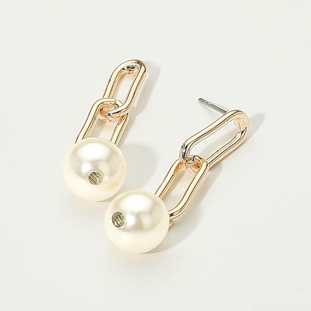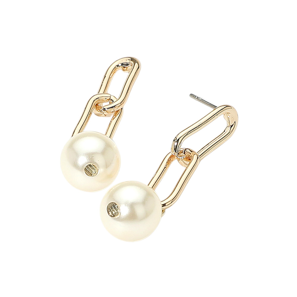 Details • Size : 0.4" X 1.5" • Post Back • Elegant drop earrings featuring a modern chain link design accented with polished beads. Lightweight and stylish, they offer a chic touch to both everyday outfits and special occasions, making them a versatile accessory for any jewelry collection. • Gold Dipped