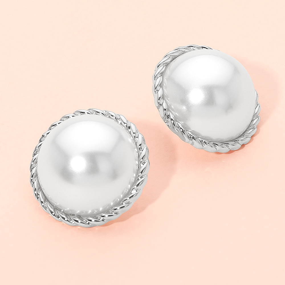• These classic round pearl feature a polished, raised centerpiece framed by a twisted border, creating a timeless and elegant silhouette. Lightweight and refined, they offer a versatile touch that enhances both everyday style and special-occasion looks with effortless sophistication.