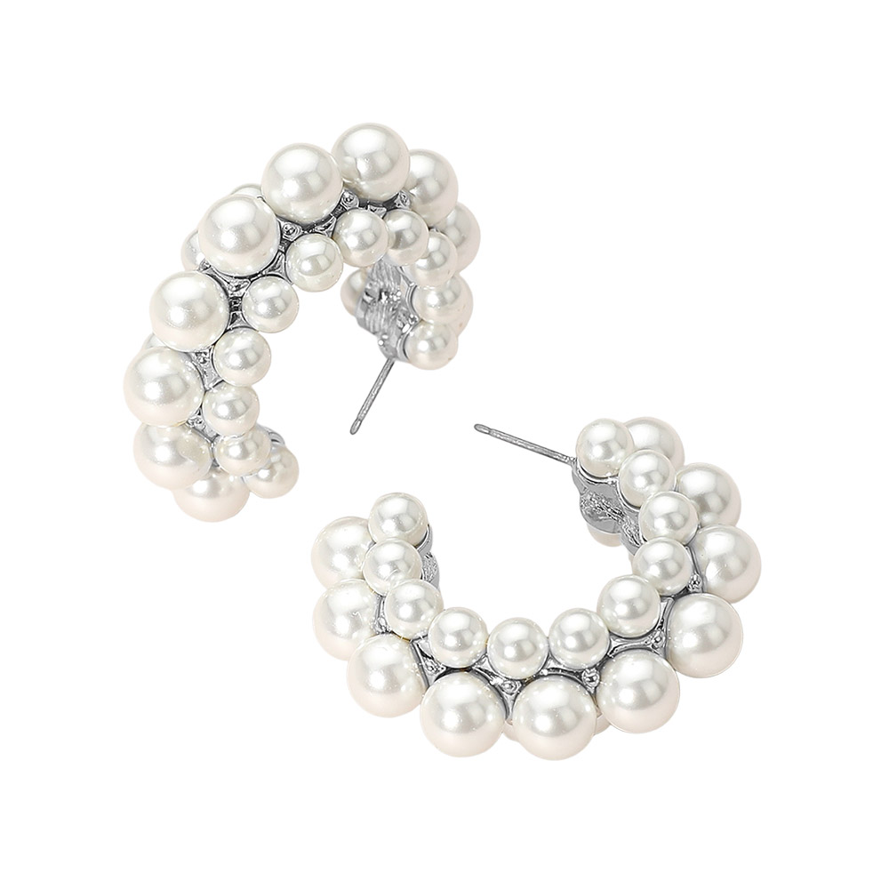 Details • Size : 1.5" X 1.5" X 0.5" • Post Back • Make a timeless impression with these pearl cluster hoop earrings featuring a layered arrangement of lustrous spheres. Their sculpted design adds a chic, feminine touch that transitions effortlessly from day to night, enhancing any outfit with classic sophistication and radiant charm. • Lead and Nickel Compliant
