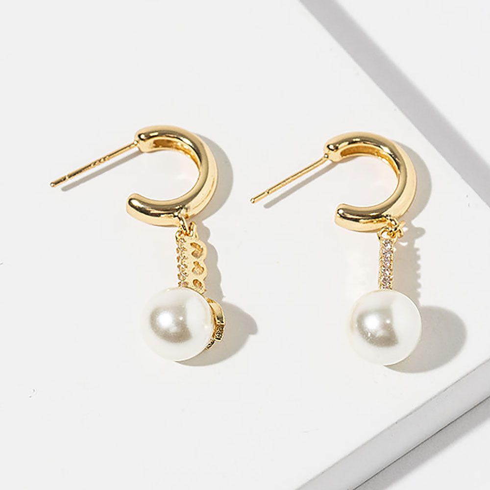 • Elegant hoop earrings featuring a smooth curved silhouette paired with a single round drop and a delicate CZ-accent connector. Designed to add gentle movement and refined charm, this versatile style transitions effortlessly from everyday outfits to dressy occasions and layered accessory looks.
