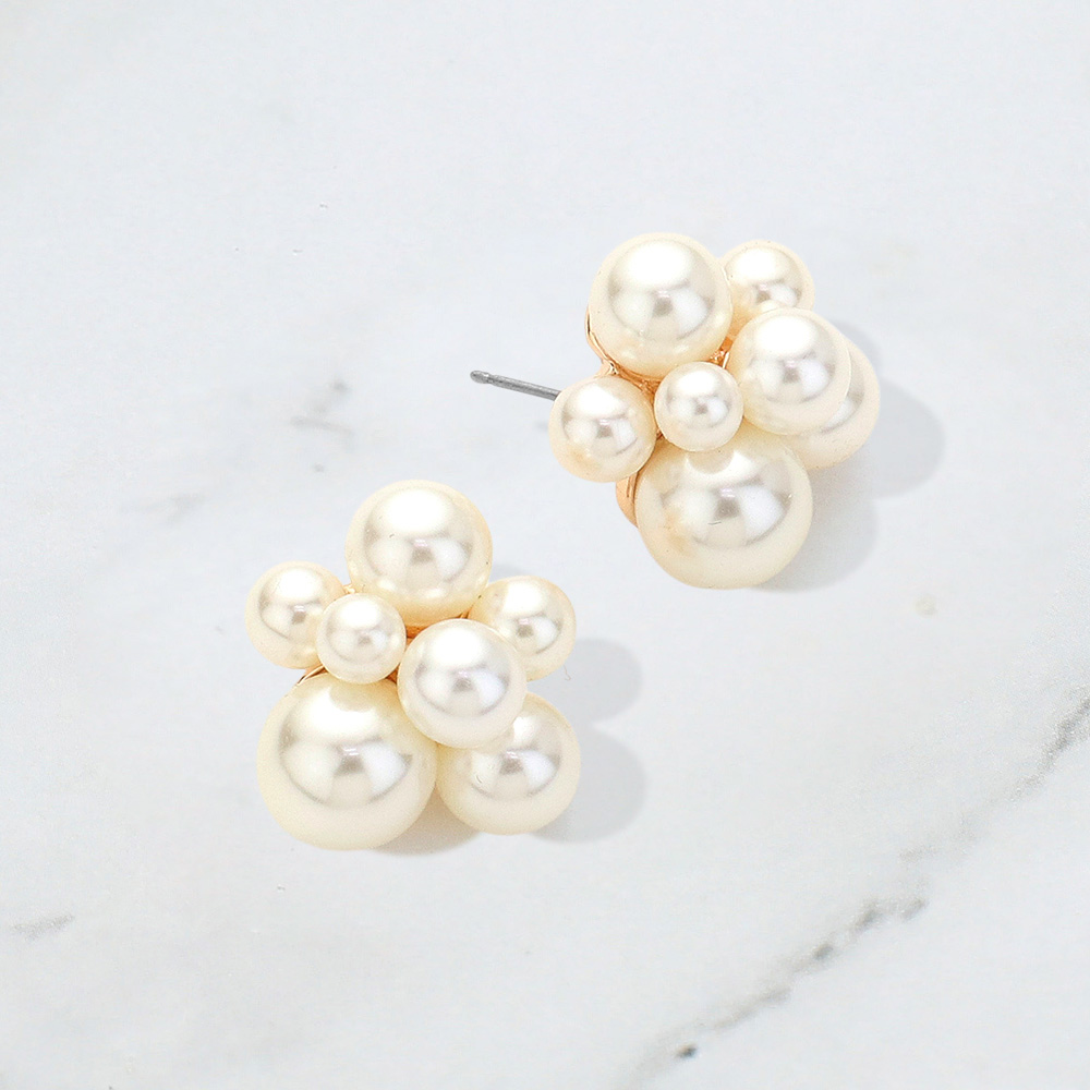 Details • Size : 0.75" X 0.75" • Post Back • Add timeless charm with these cluster pearl stud earrings, featuring multiple pearl accents arranged in a chic floral-inspired design. Lightweight and versatile, they bring elegance to casual wear or formal occasions, making them a must-have accessory for a sophisticated jewelry collection. • Lead and Nickel Compliant