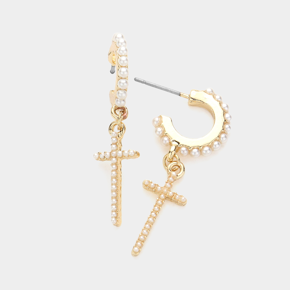 18K Gold Dipped CZ Stone Pave Cross Stud Earrings