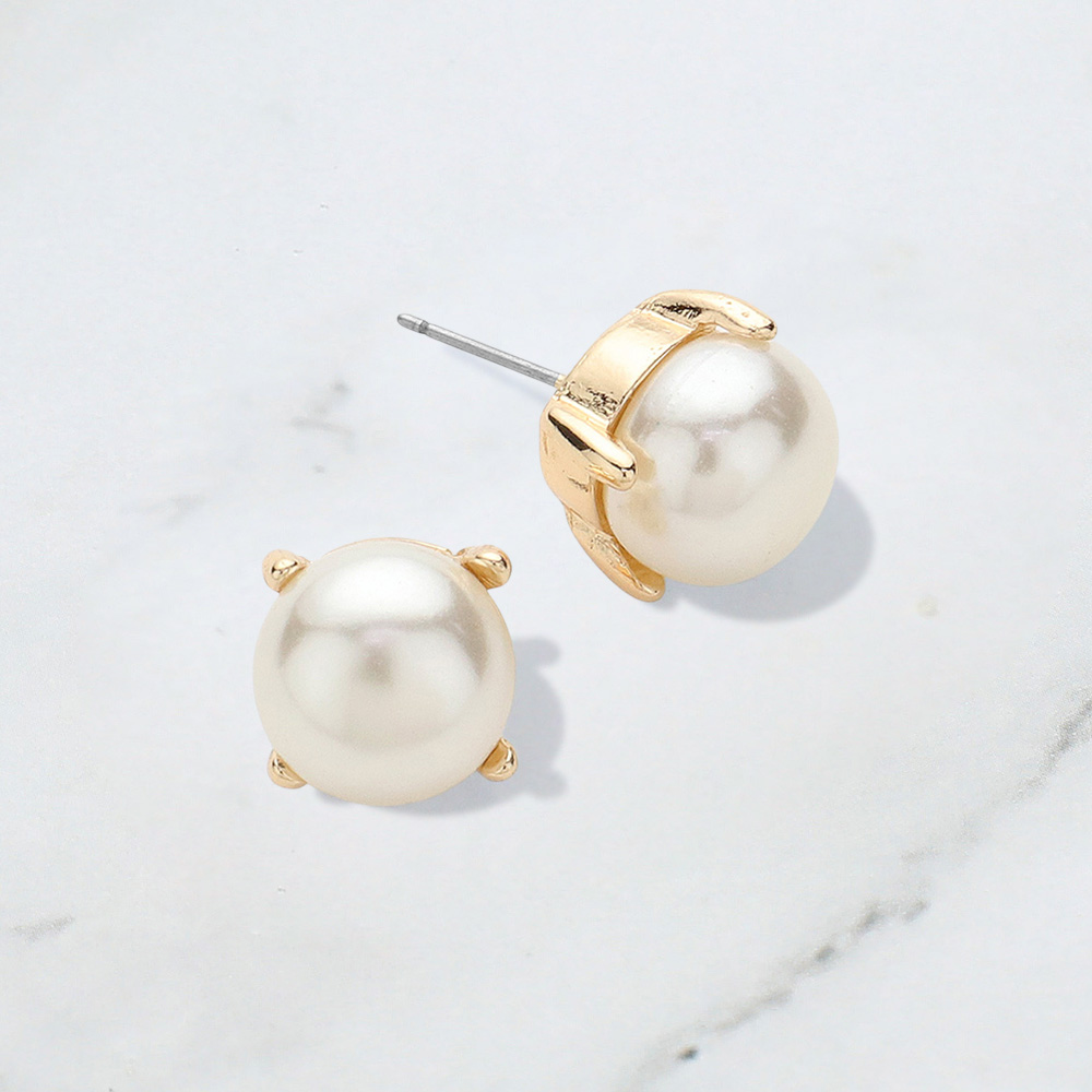 Details • Size : 0.4" X 0.4" • Post Back • Add effortless elegance to your look with these classic pearl stud earrings. Designed with a secure prong setting, they offer a refined style perfect for daily wear, formal events, or gifting, making them a must-have timeless accessory. • Lead and Nickel Compliant