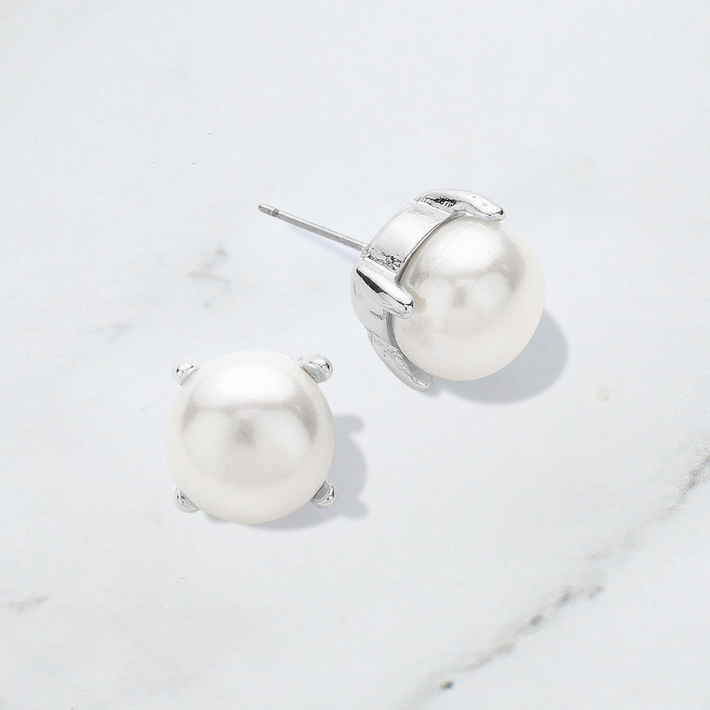 Details • Size : 0.4" X 0.4" • Post Back • Add effortless elegance to your look with these classic pearl stud earrings. Designed with a secure prong setting, they offer a refined style perfect for daily wear, formal events, or gifting, making them a must-have timeless accessory. • Lead and Nickel Compliant