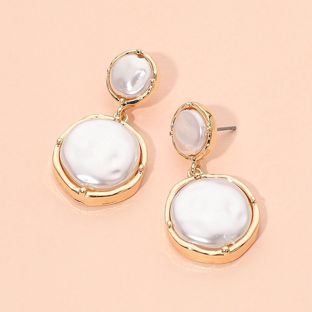 • Chic pearl double-disc drop earrings designed with stacked rounded accents that create soft movement and subtle shimmer. A polished statement piece that elevates casual looks and pairs effortlessly with dressy outfits for a refined, modern finishing touch.