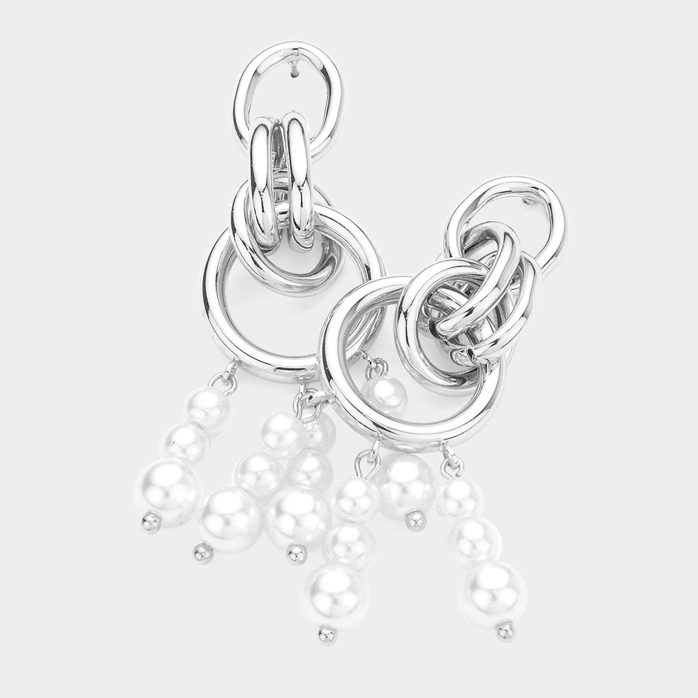 White Gold Dipped Pearl Accent Textured Chunky Chain Link Bracelet