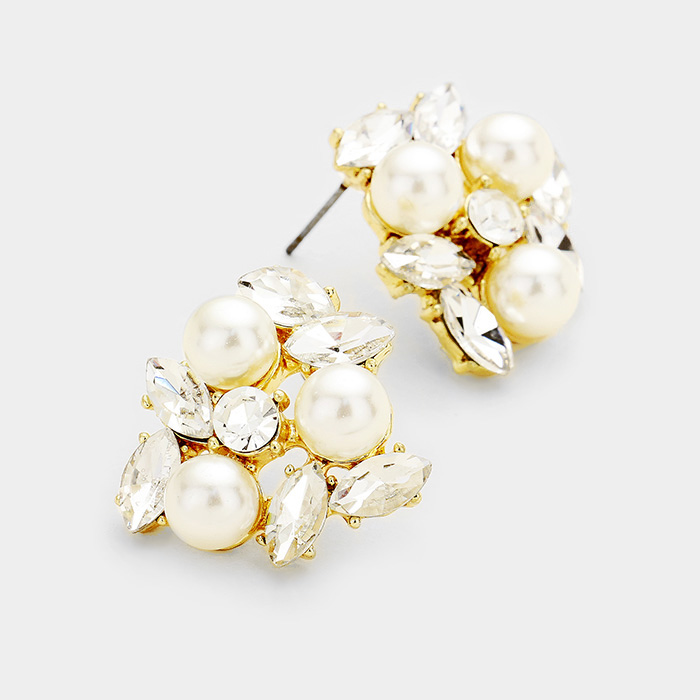 Marquise Stone Cluster Drop Dangle Evening Earrings