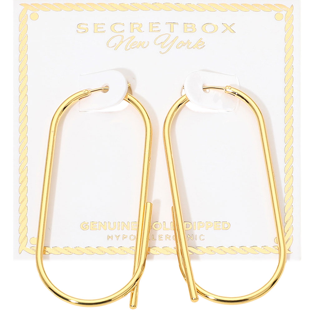 Details • Size : 1.1" X 2.4" • Pin Catch • Modern elongated oval hoop earrings designed with a sleek open silhouette for effortless everyday styling. Lightweight and comfortable, these hoops add a refined statement to casual looks or polished outfits, making them a versatile essential for minimalist jewelry collections and layered ear styling. • Gold Dipped • Hypoallergenic