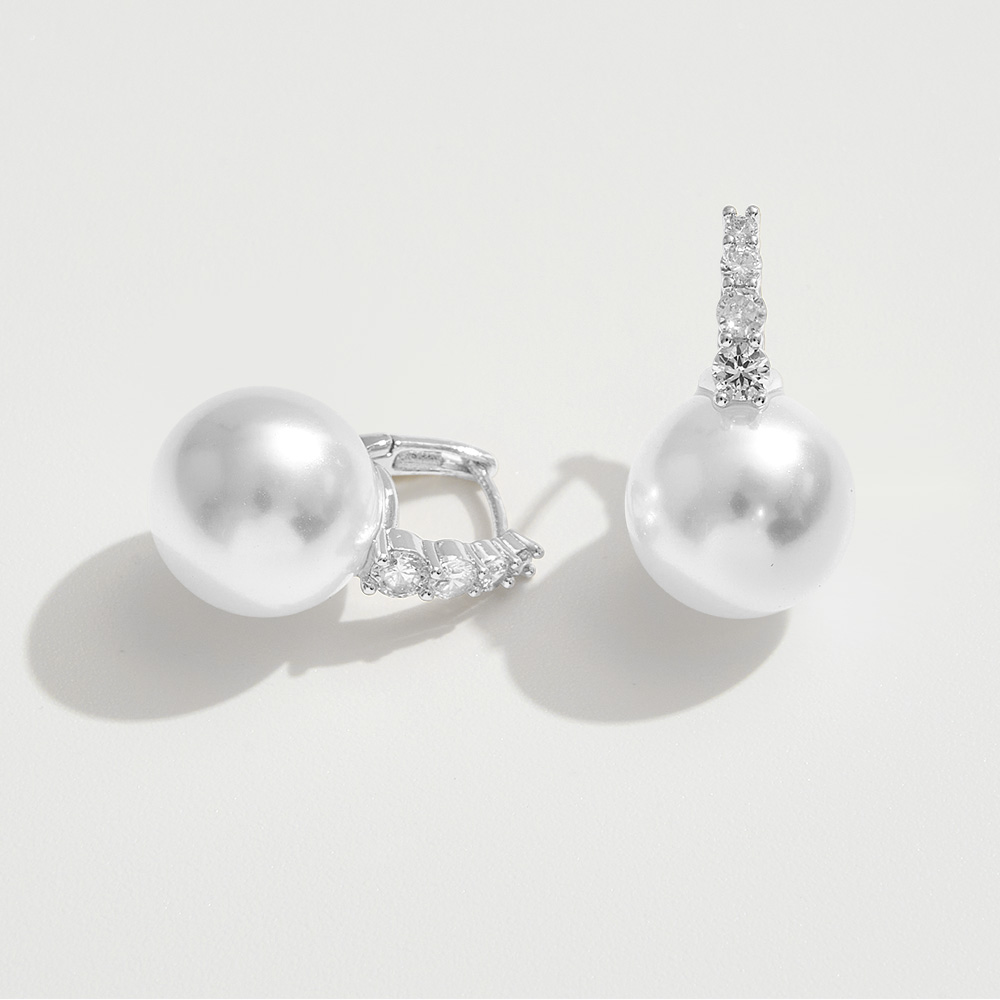 Details • Size : 0.7" X 1" • Hugie Back • These graceful drop earrings feature a lustrous pearl suspended from a line of sparkling stones, blending timeless charm with modern elegance. Perfect for weddings, evening events, or everyday sophistication, they add a refined touch to any jewelry collection. • Brass • CZ Cubic Zirconia • Gold Dipped • Hypoallergenic • Lead and Nickel Compliant • Made In Korea