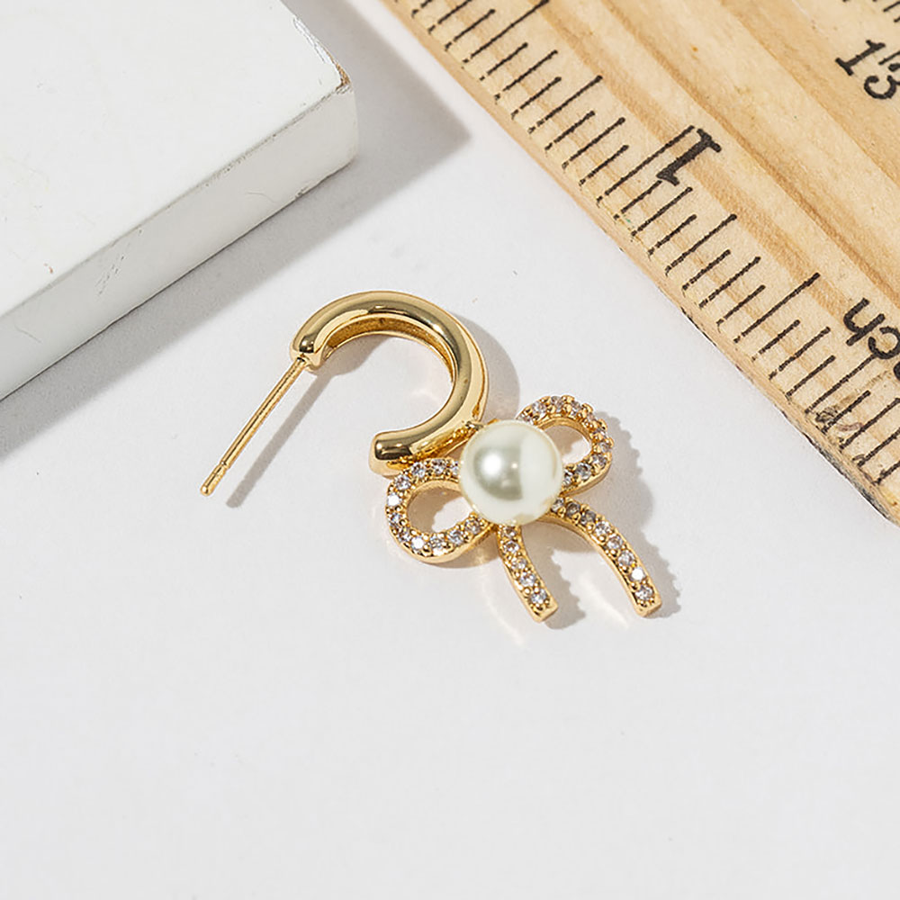 Details • Size : 0.6" X 1.2" • Charming hoop earrings designed with a graceful bow silhouette and a smooth round drop at the center. Accented with subtle cz sparkle, this feminine style adds movement and elegance, making it ideal for daily wear, gifting, or pairing with both casual and dressy outfits. • CZ Cubic Zirconia • Gold Dipped • Lead and Nickel Compliant • Made In Korea • Sterling Silver Post