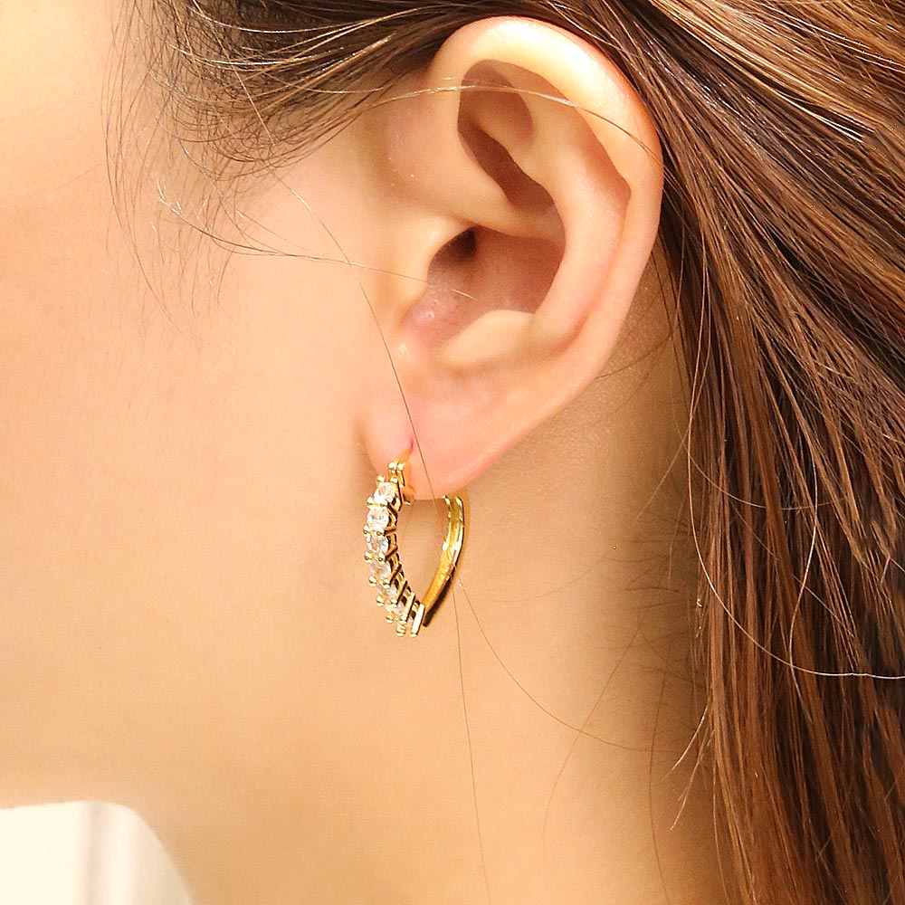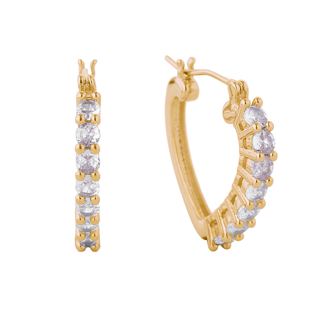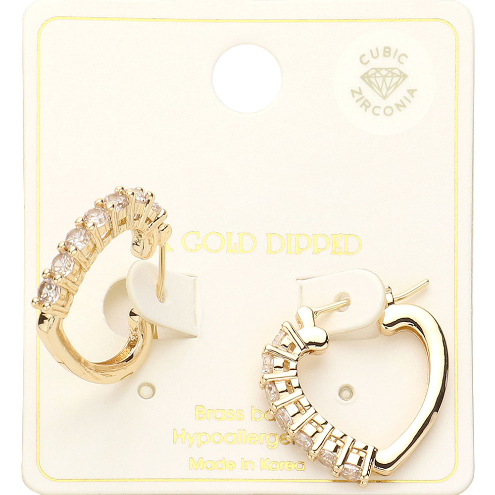 14K Gold Dipped CZ Stone Paved Cupid Pin Catch Hoop Earrings