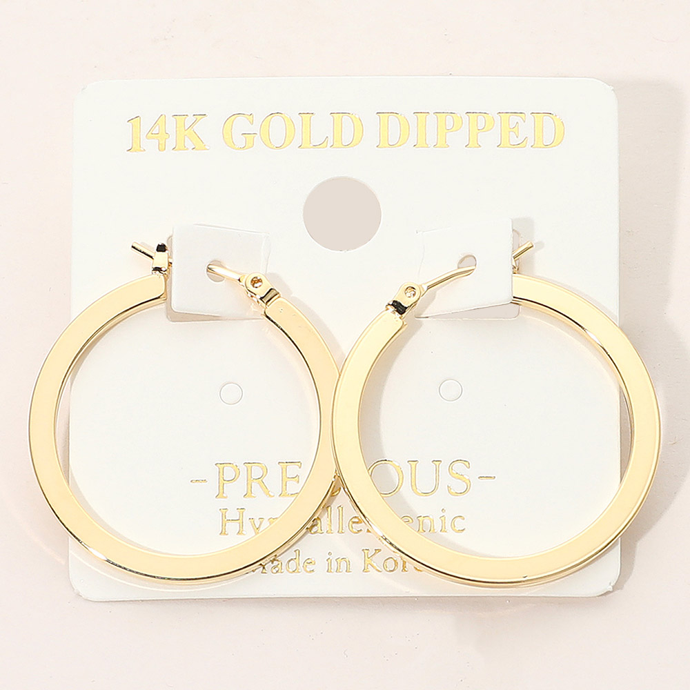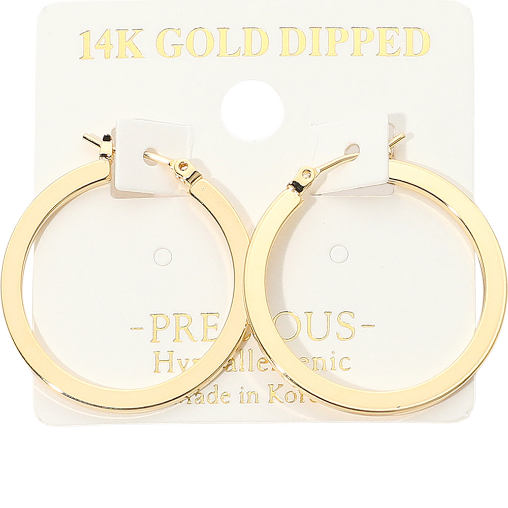 14K Gold Dipped Hypoallergenic Classic Pin Catch Hoop Earrings