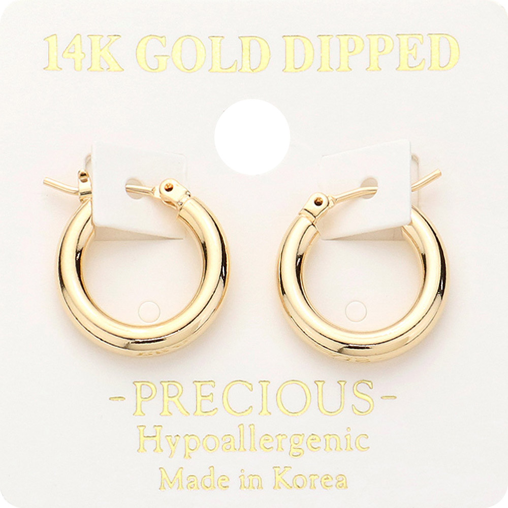14K Gold Dipped Hypoallergenic Metal Hoop Pin Catch Earrings