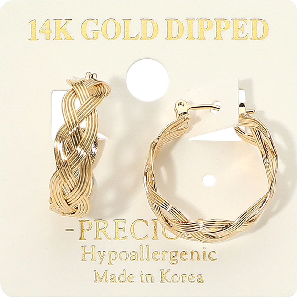 14K Gold Dipped Hypoallergenic Textured Braided Hoop Earrings