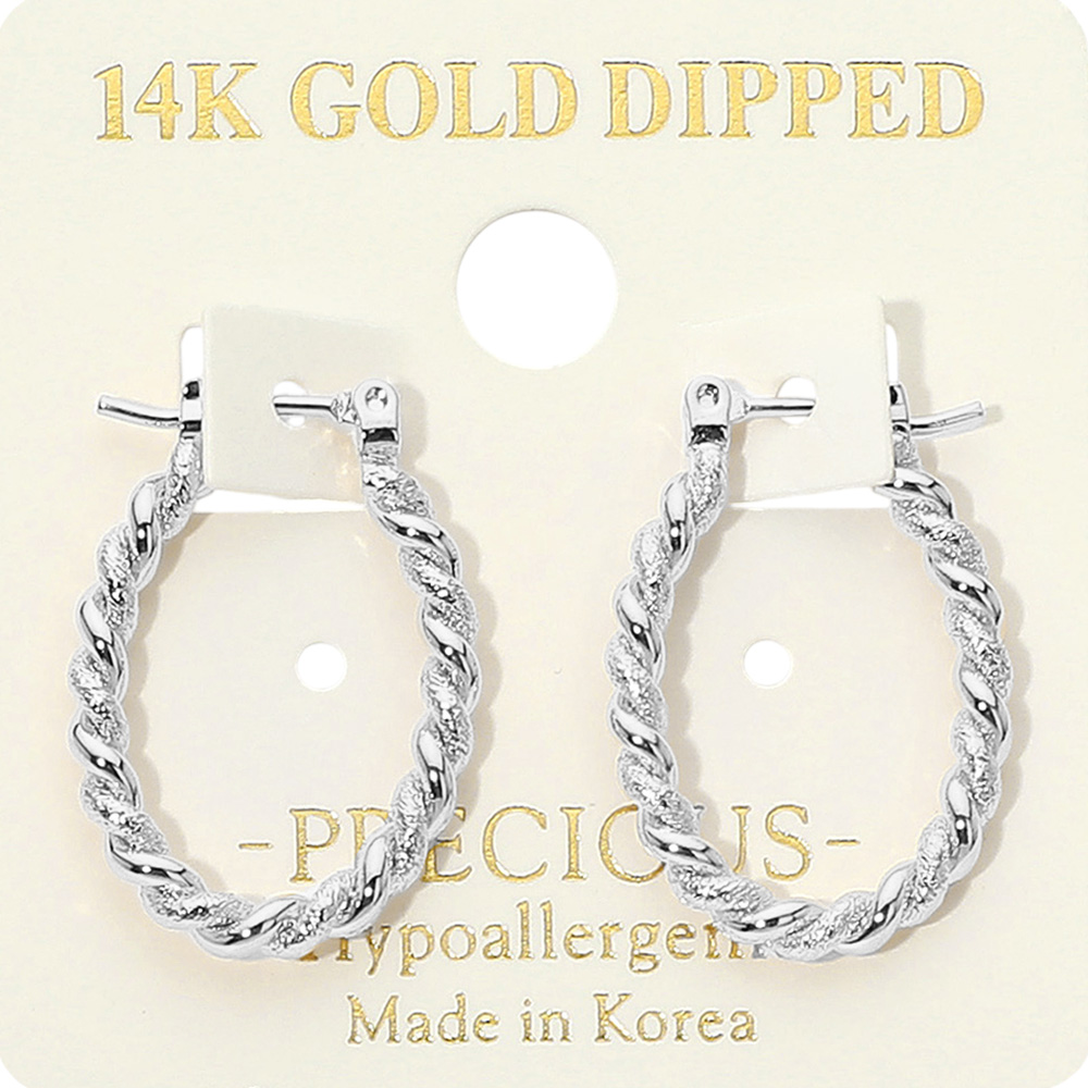 14K Gold Dipped Hypoallergenic Twisted Oval Hoop Earrings