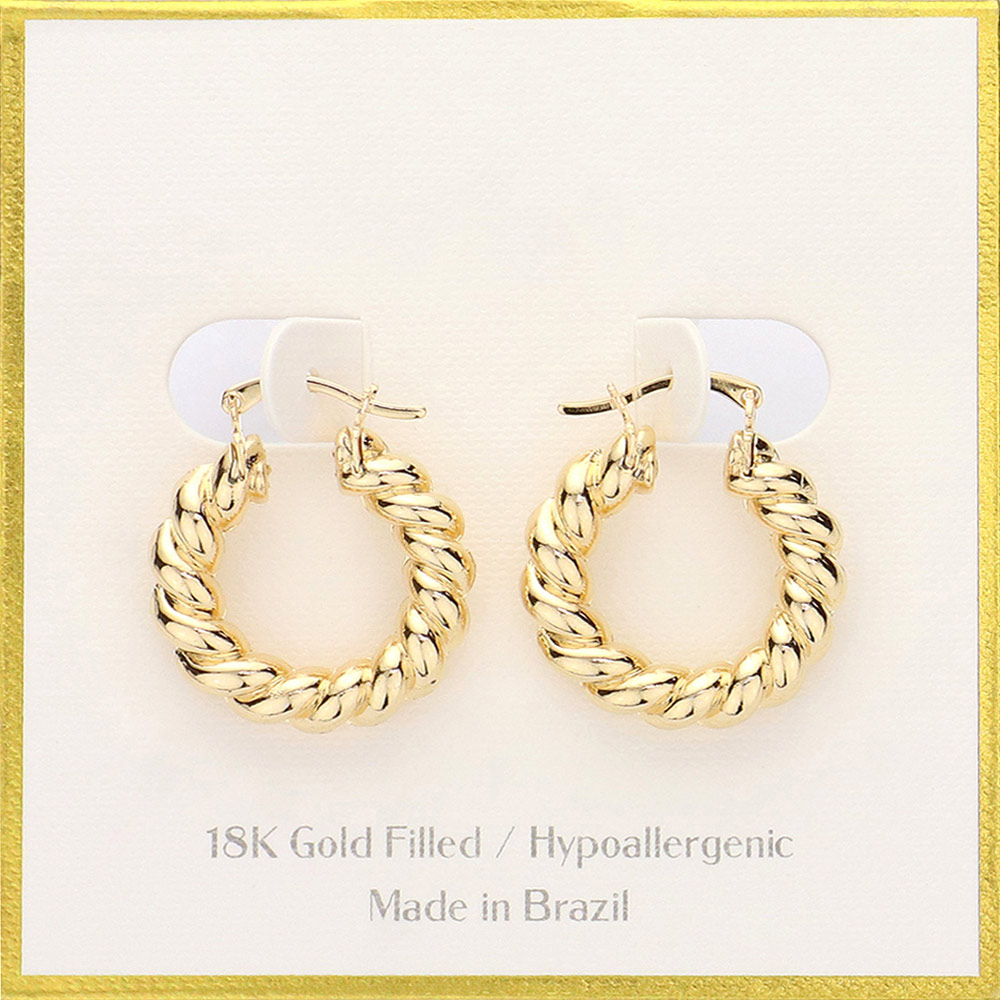 Details • Size : 0.9" X 1" • Pin Catch • These twisted hoop earrings feature a bold, sculptural design that adds dimension and sophistication to any look. Lightweight and comfortable, they’re ideal for both casual and formal wear, making them a standout accessory in any jewelry collection. • Hypoallergenic • Gold Filled • Made In Brazil