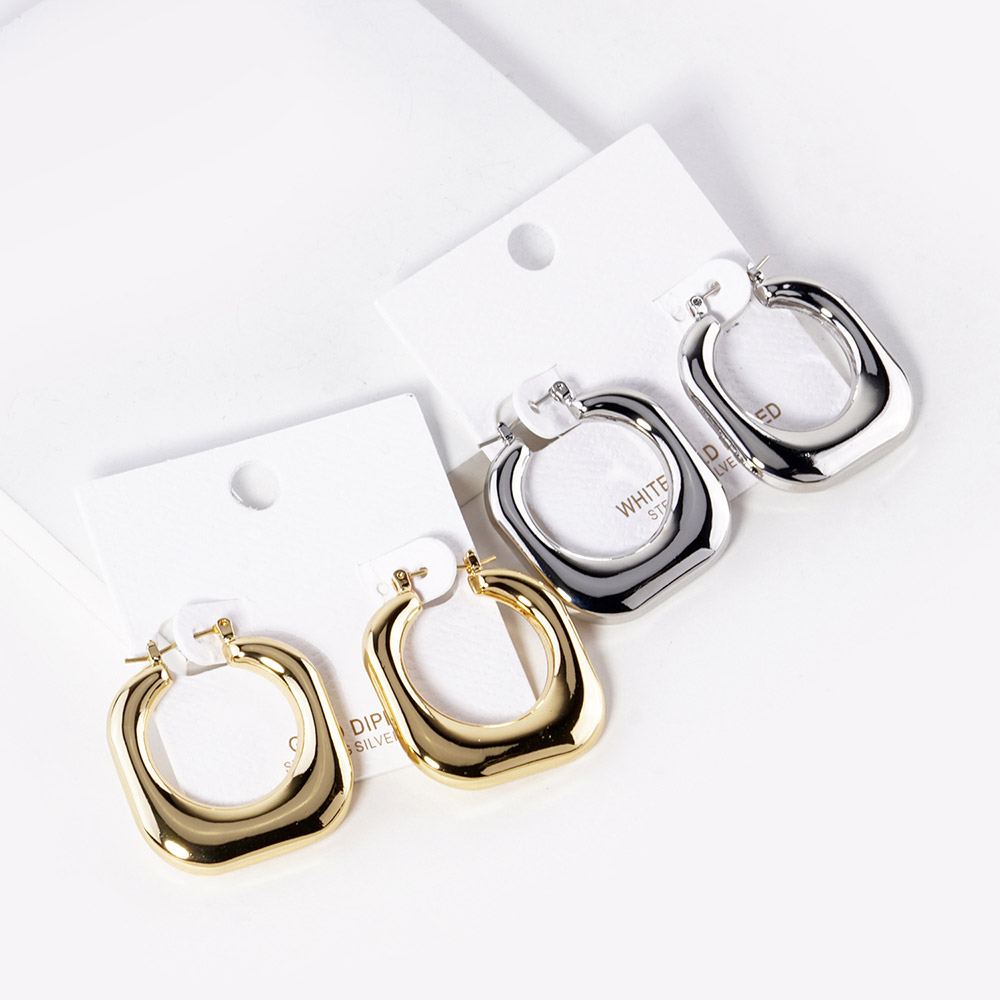 Gold Dipped Square Metal Hoop Pin Catch Earrings