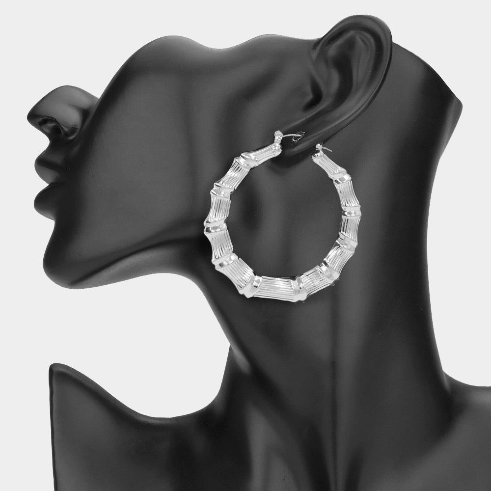 Oversized Metal Bamboo Pin Catch Hoop Earrings