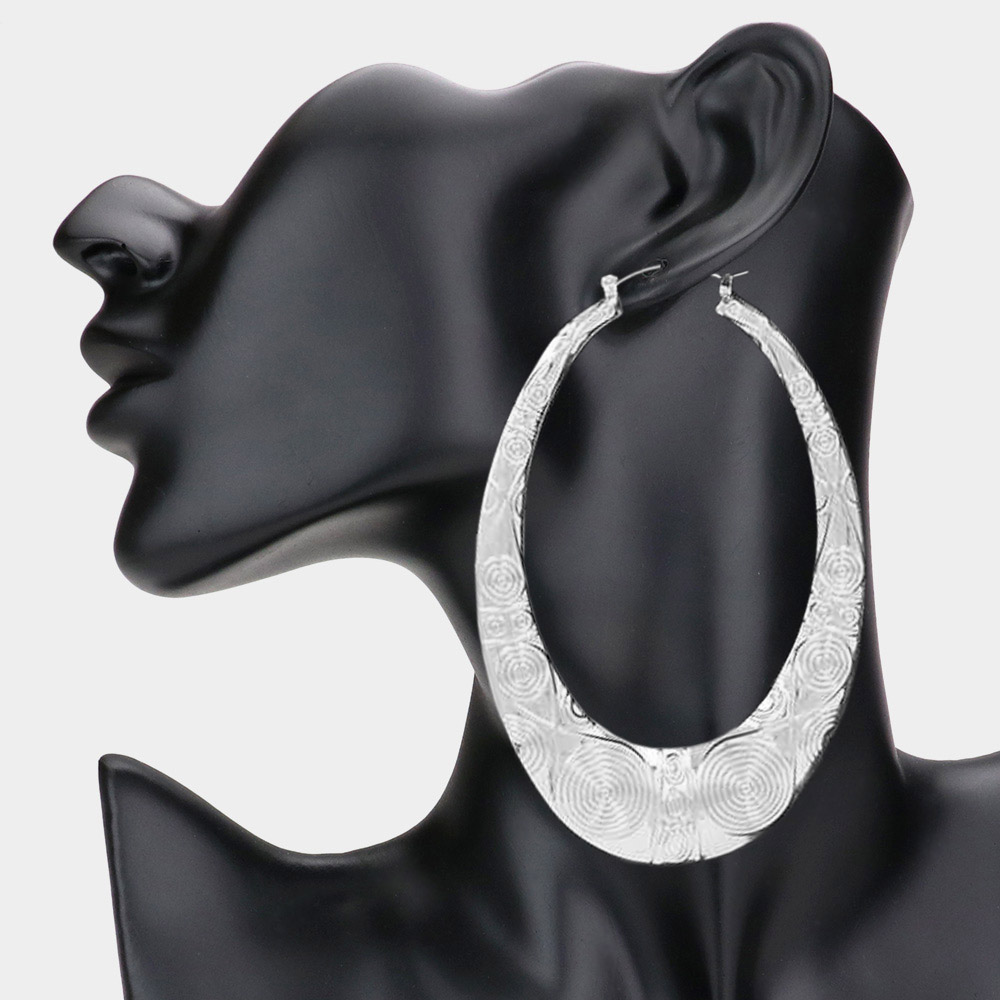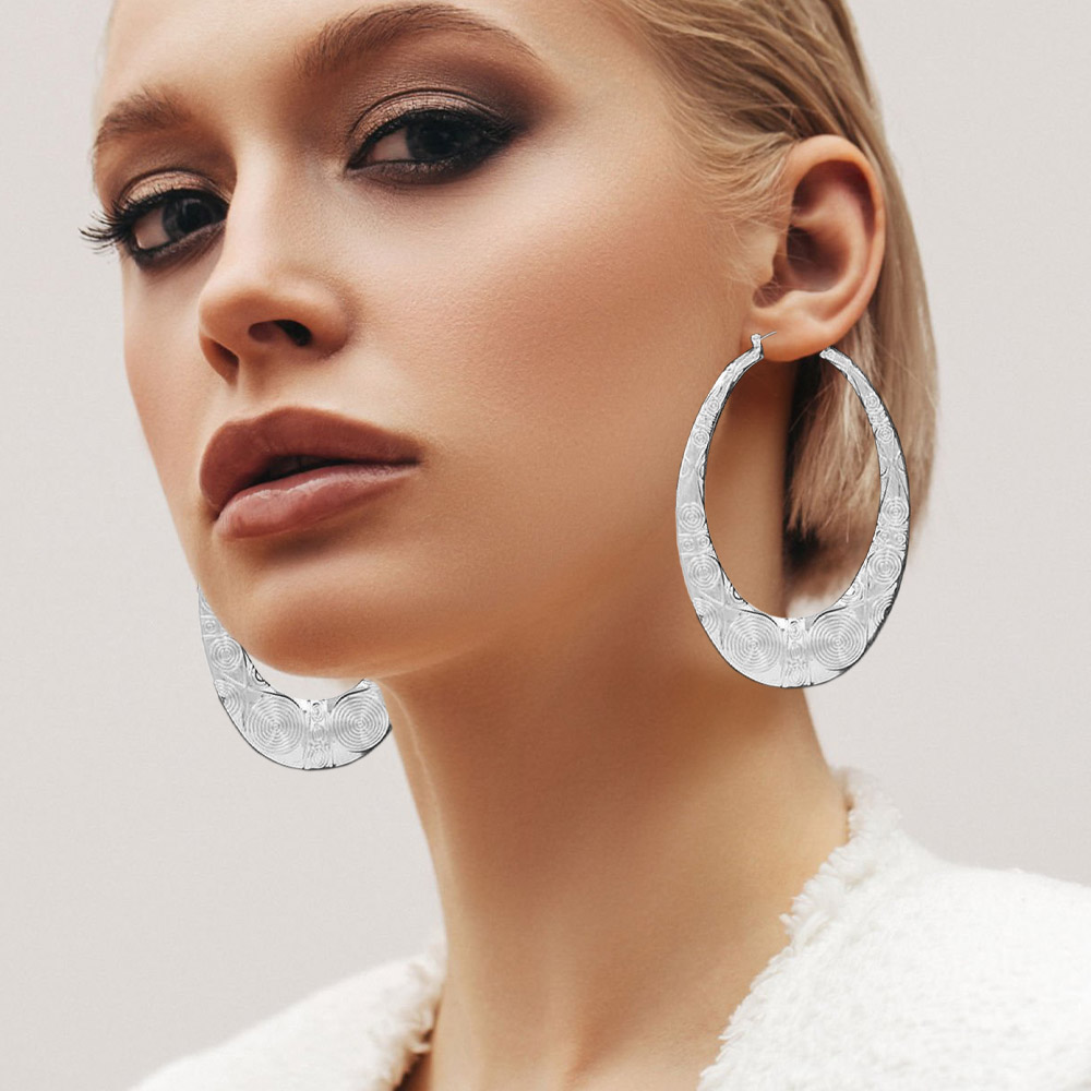 Oversized Metal Oval Pin Catch Hoop Earrings