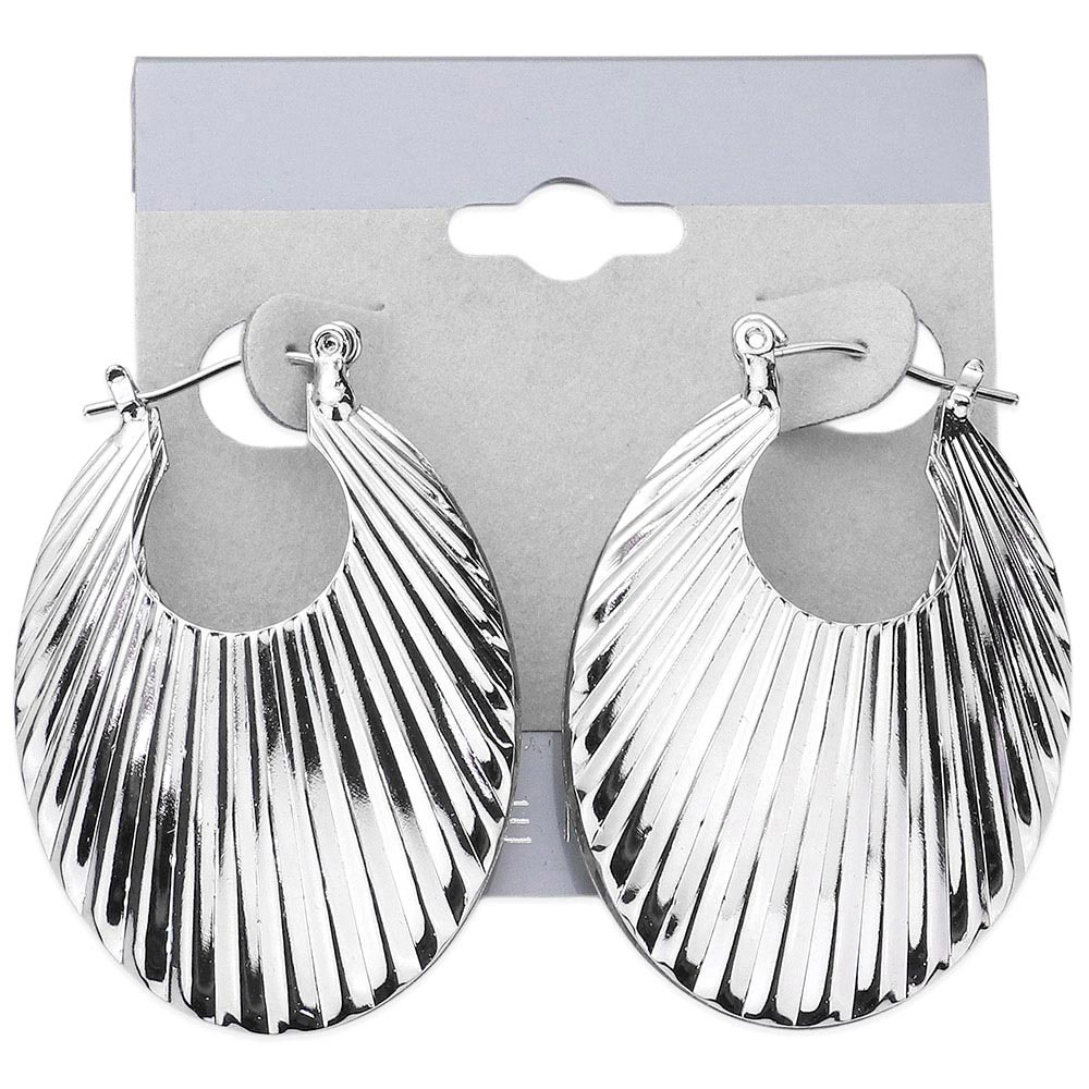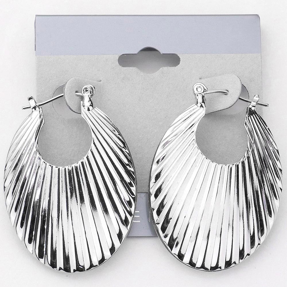 Details • Size : 1.2" X 1.5" • Pin Catch • Made In USA • Make a statement with ridged oval hoop earrings, designed with bold vertical grooves for a sleek, textured finish. Their sculptural silhouette offers modern edge and timeless appeal, making them the perfect accessory for elevating both casual and evening outfits.