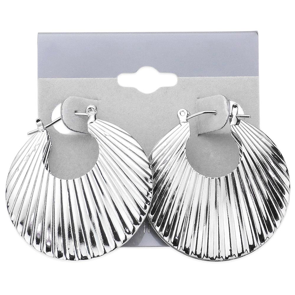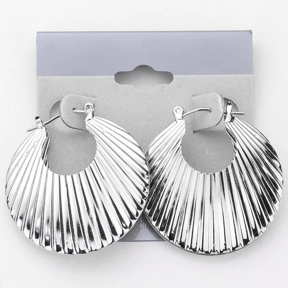 Details • Size : 1.3" X 1.3" • Pin Catch • Made In USA • Turn heads with ridged round hoop earrings featuring bold vertical grooves for a textured, sculptural design. Their striking silhouette blends modern edge with timeless elegance, making them a versatile statement accessory for elevating everyday looks or evening wear.