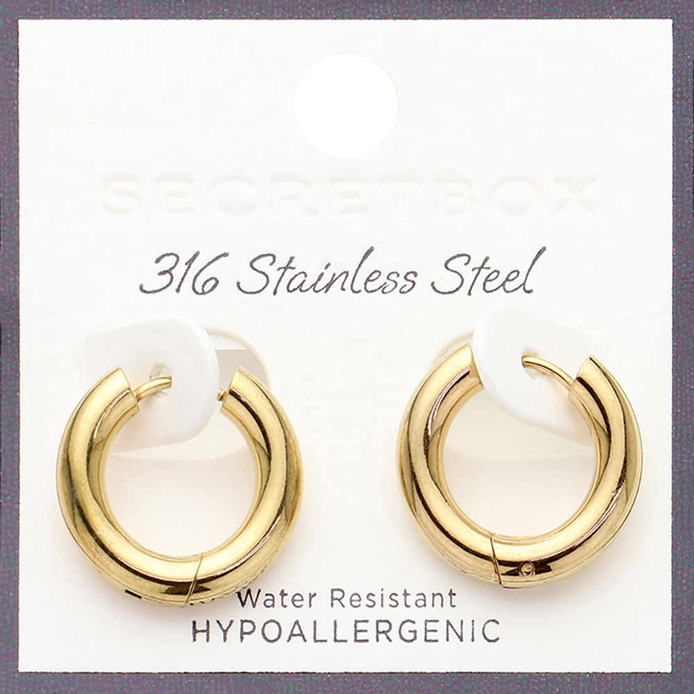 Details • Size : 0.8" X 0.8" • Huggie Back • Water Resistant • Add timeless style to your accessories with these classic stainless steel hoop earrings. Designed for comfort and everyday wear, they are water-resistant and hypoallergenic, making them ideal for sensitive skin and versatile enough for both casual and formal outfits. • Lead and Nickel Compliant • Hypoallergenic • Stainless Steel