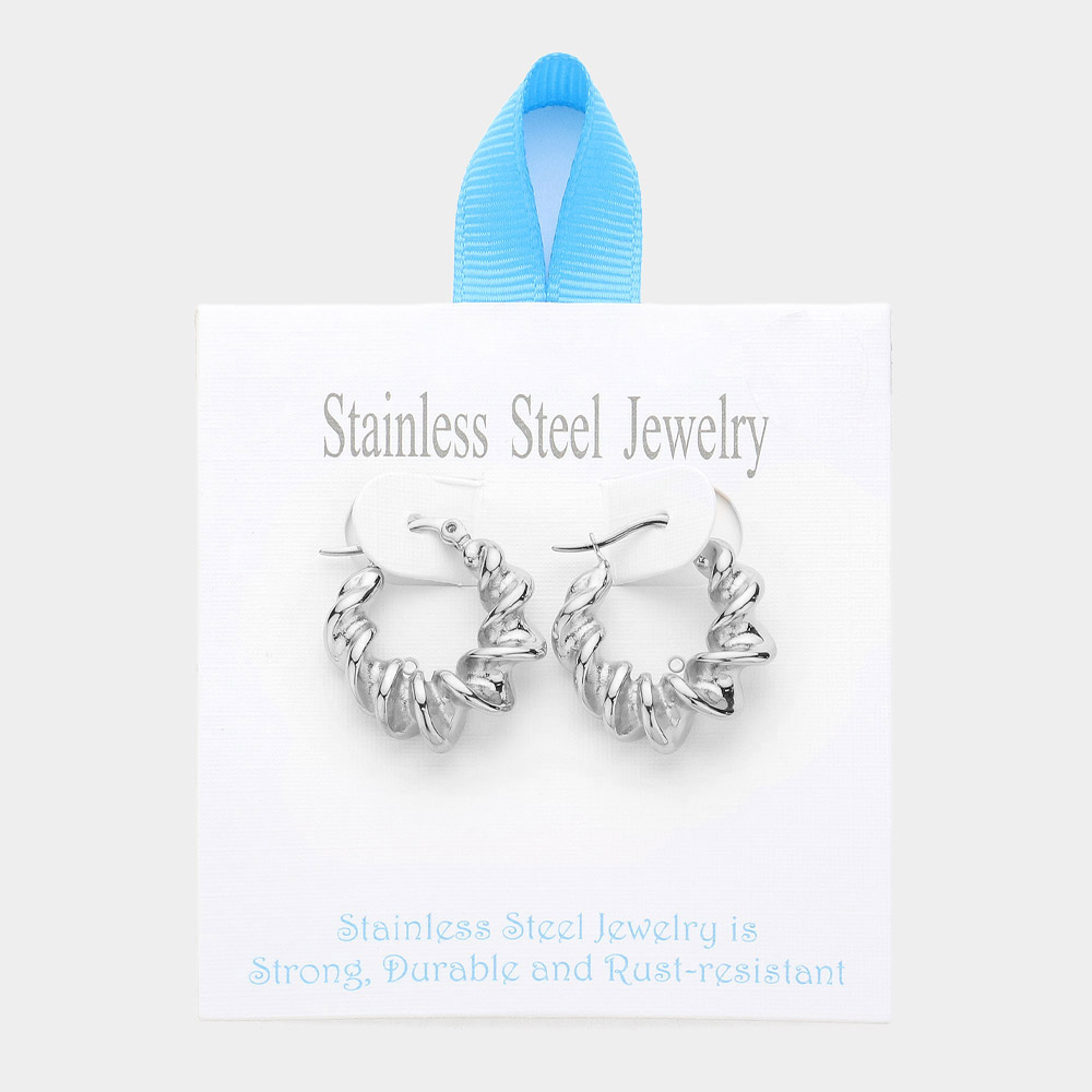 Stainless Steel Spiral Hoop Pin Catch Earrings