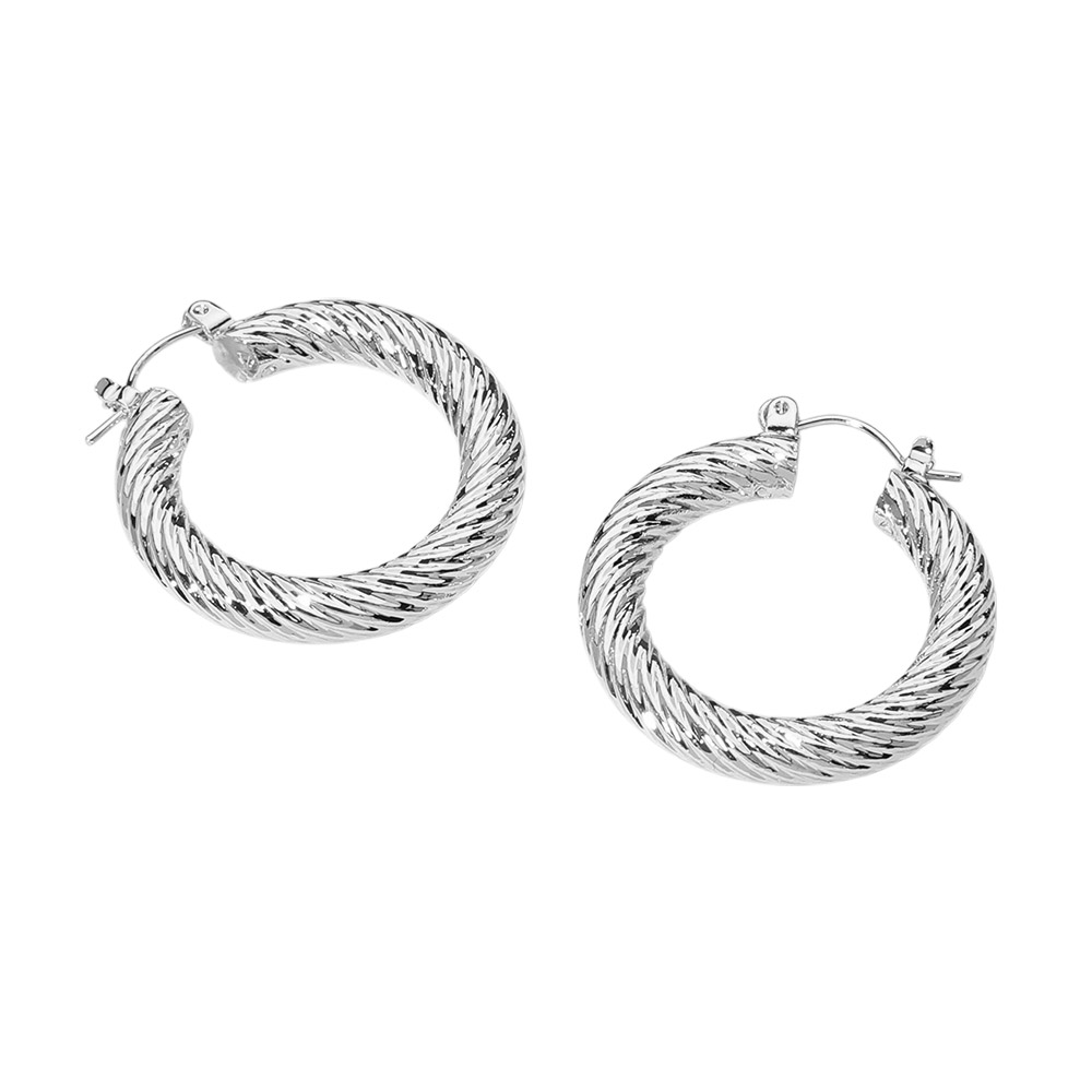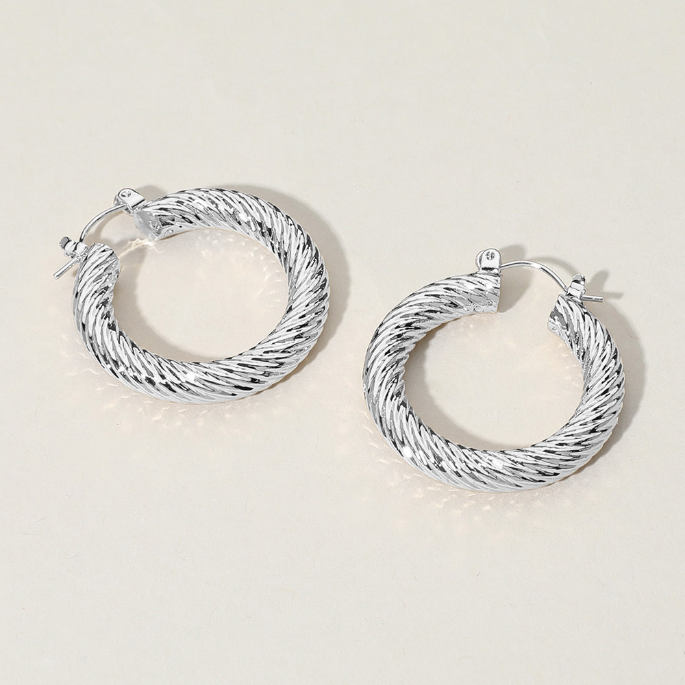 Details • Size : 1.2" X 1.25" • Pin Catch • Stylish twisted hoop earrings with a bold, textured design. These statement hoops add dimension and elegance to any outfit, perfect for casual wear or dressing up. Lightweight and comfortable for all-day use. • Lead and Nickel Compliant