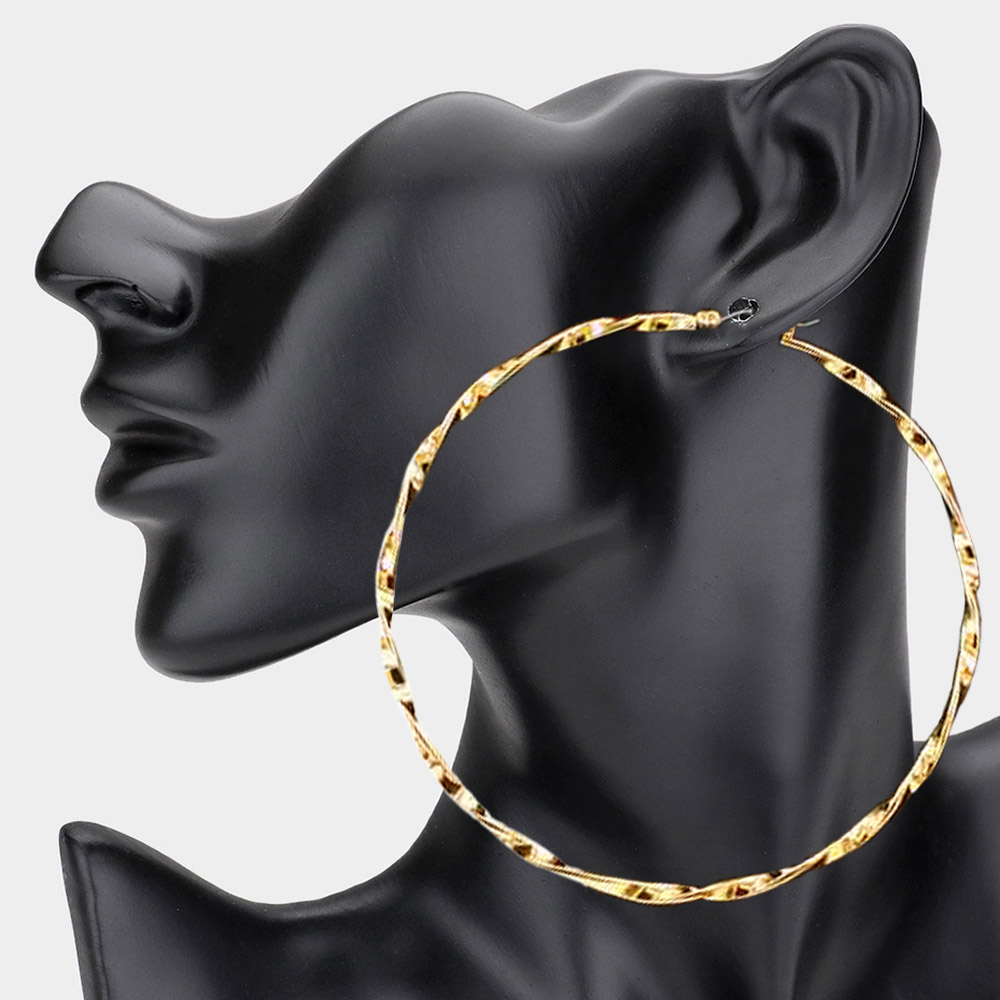 Twisted Metal Pin Catch Hoop Earrings