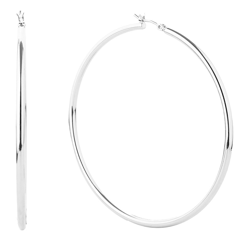 Details • Size : 2.75" X 2.75" • Pin Catch • Water resistant plating • Stylish large hoop earrings designed to make a bold impact. Lightweight and comfortable for all-day wear, these hoops elevate casual and dressy outfits with effortless glamour, making them a versatile must-have accessory for modern fashion. • Brass • Gold Dipped • Hypoallergenic • Lead and Nickel Compliant • Made In Korea