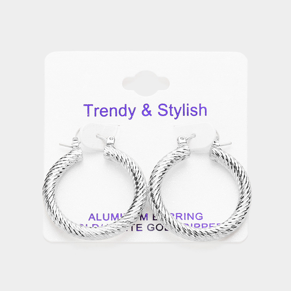 White Gold Dipped Textured Aluminum Hoop Earrings