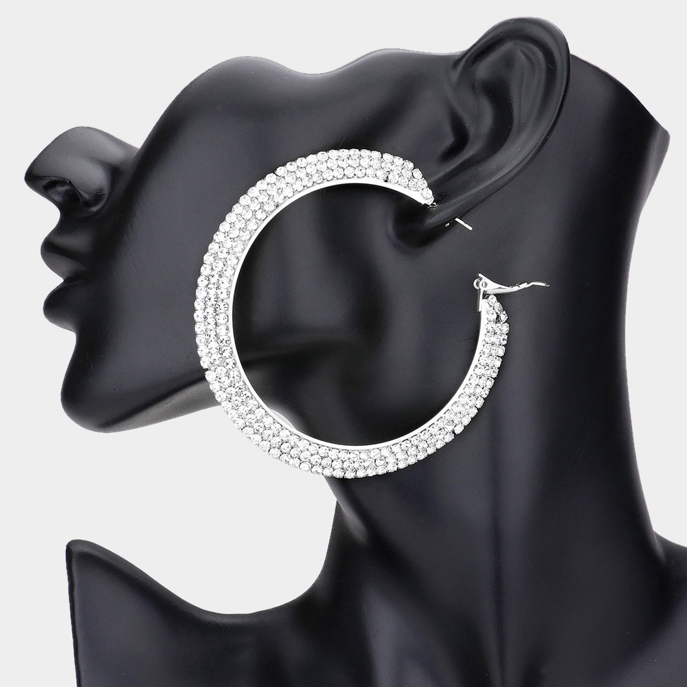 Crystal Rhinestone 2.8 Inch Hoop Earrings