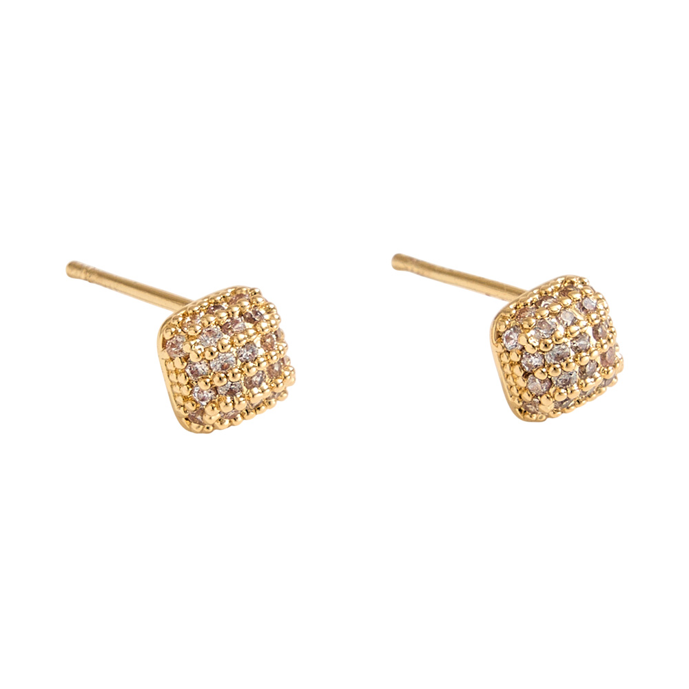 14K Gold Dipped CZ Stone Paved Mini Square Stud Earrings