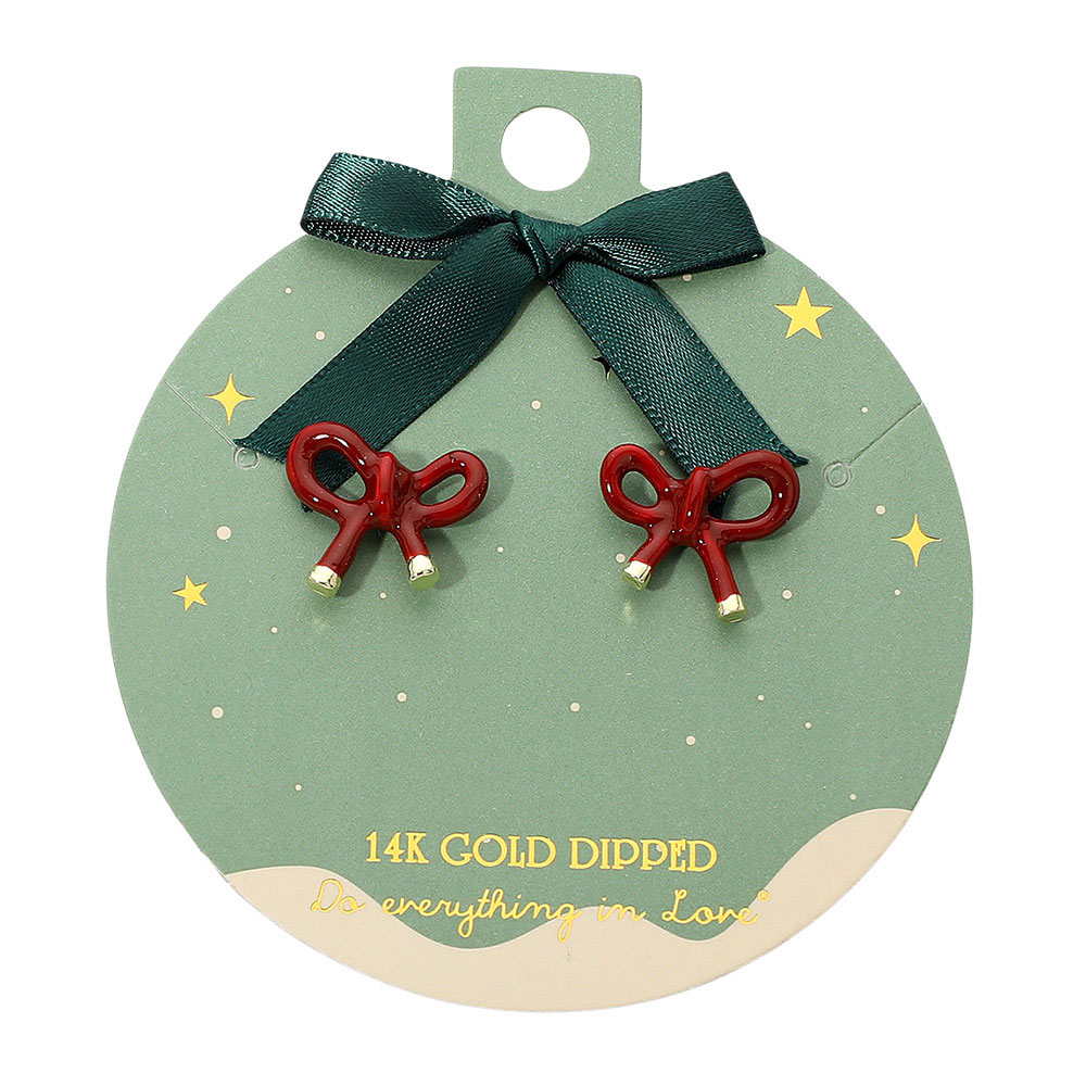 14K Gold Dipped Festive Bow Knot Stud Earrings