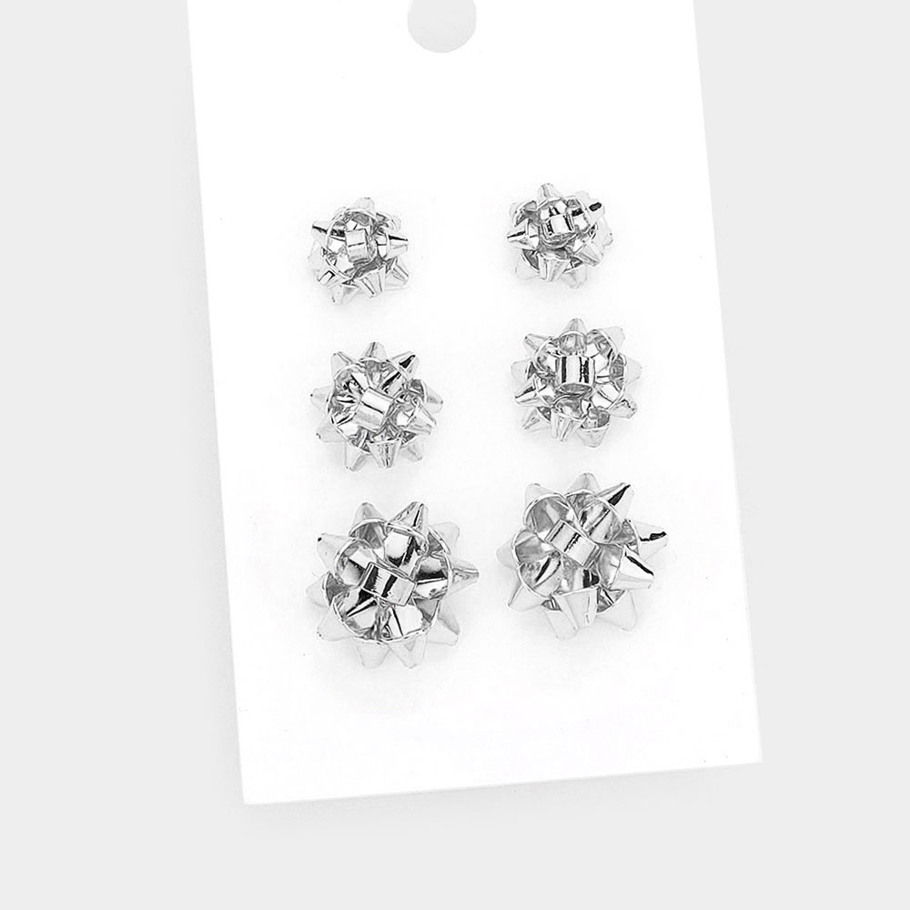 5Pairs - Holiday Snowflake Candy Cane Snowman Bow Christmas Tree Earring Set
