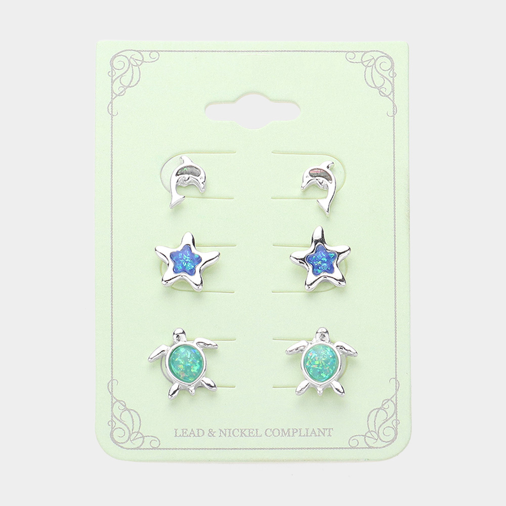 3Pairs - Dolphin Starfish Sea Turtle Stud Earrings Set