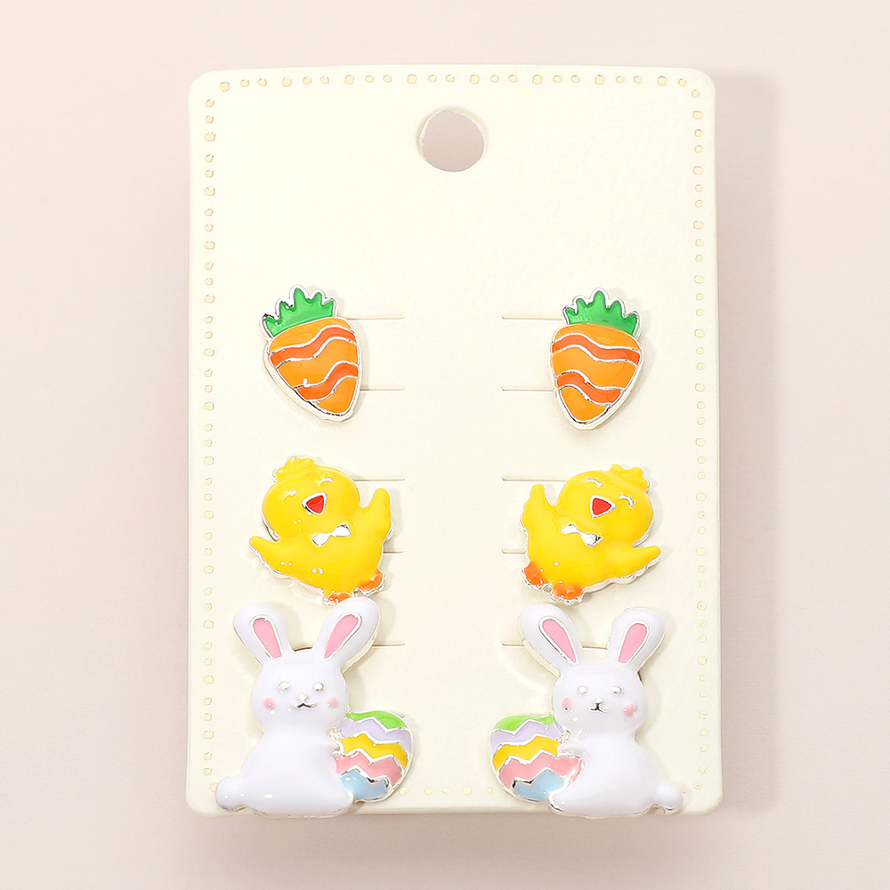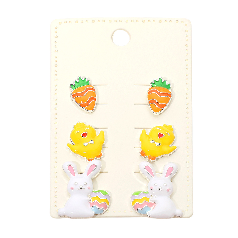 3Pairs - Enamel Easter Bunny Chick Carrot Stud Earring Set 3Pairs - Enamel Easter Bunny Chick Carrot Stud Earring Set