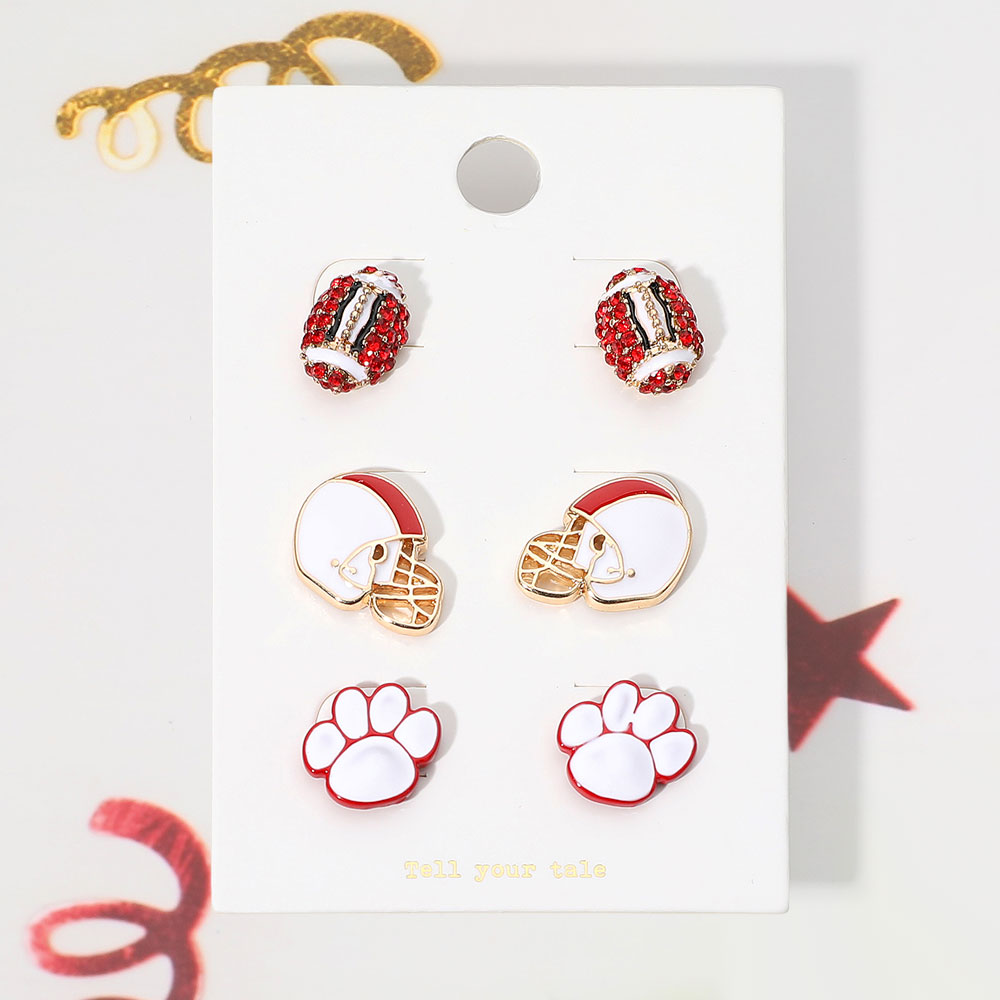 3Pairs - Game Day Spirit Ball Helmet Paw Stud Earring Set