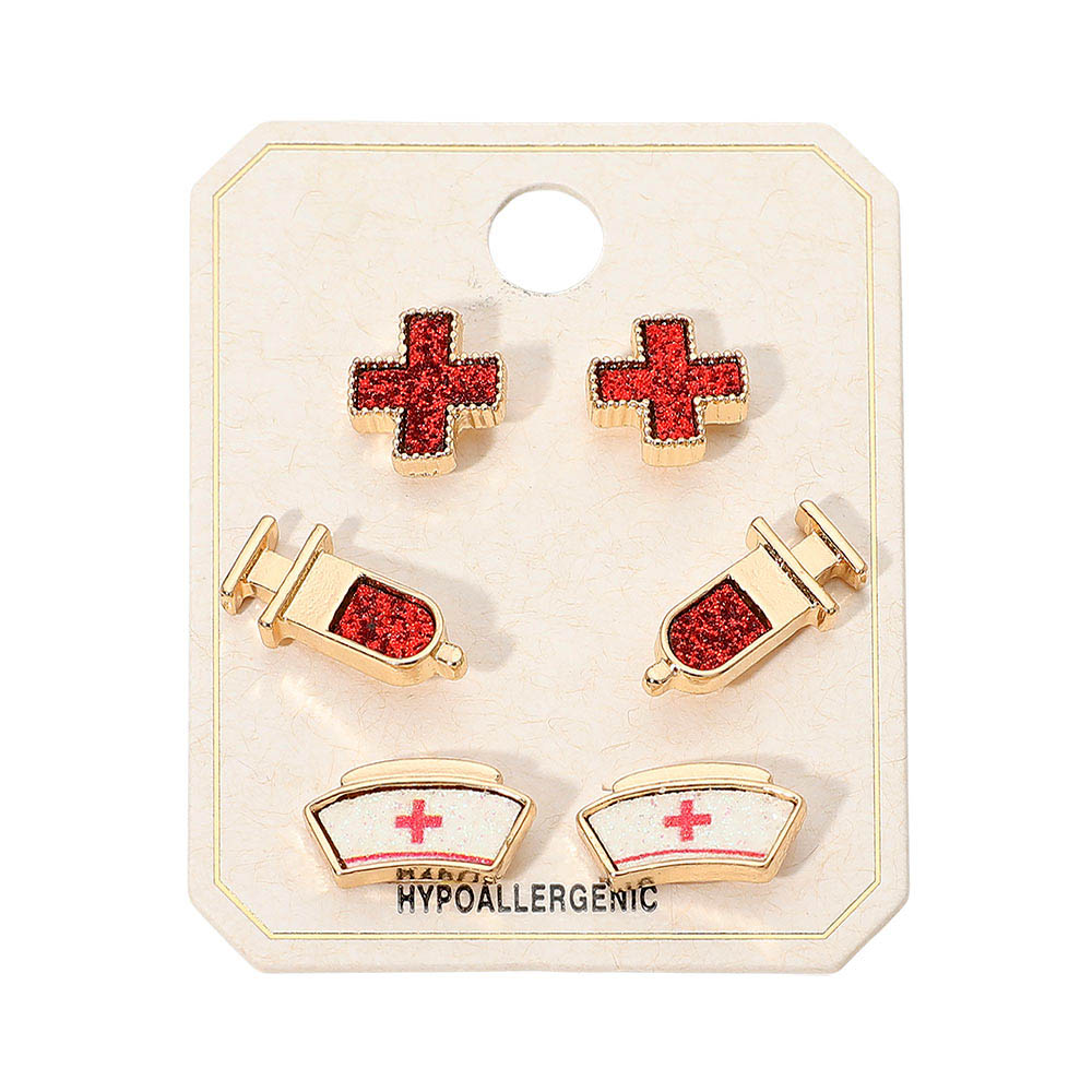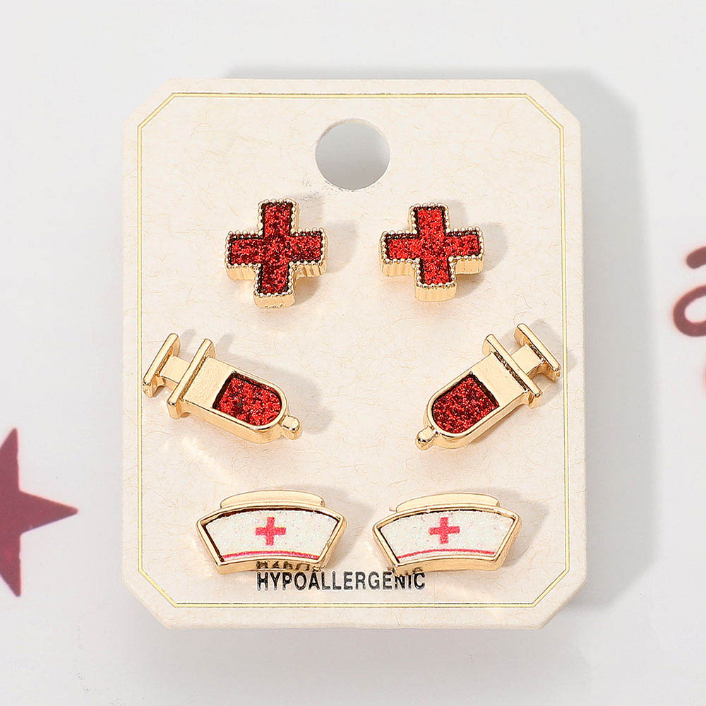 3Pairs - Nurse Icon Stud Earring Set 3Pairs - Nurse Icon Stud Earring Set